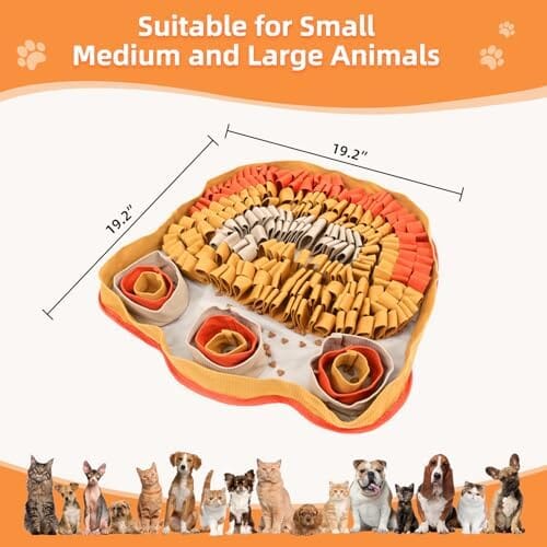 - Rich Feeding Game: The dimensions of the dog food mat are 19.2 x 19.2 inches, suitable for the vast majority of dogs. This dog puzzle mat is very easy to clean! It is machine washable
