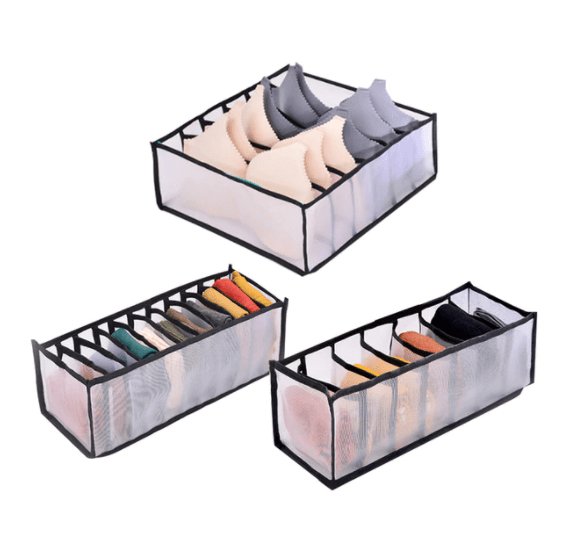 - Perfect complete set - Comes with 3 pcs set, 1 Drawganizer each for bras, socks, and underwear.