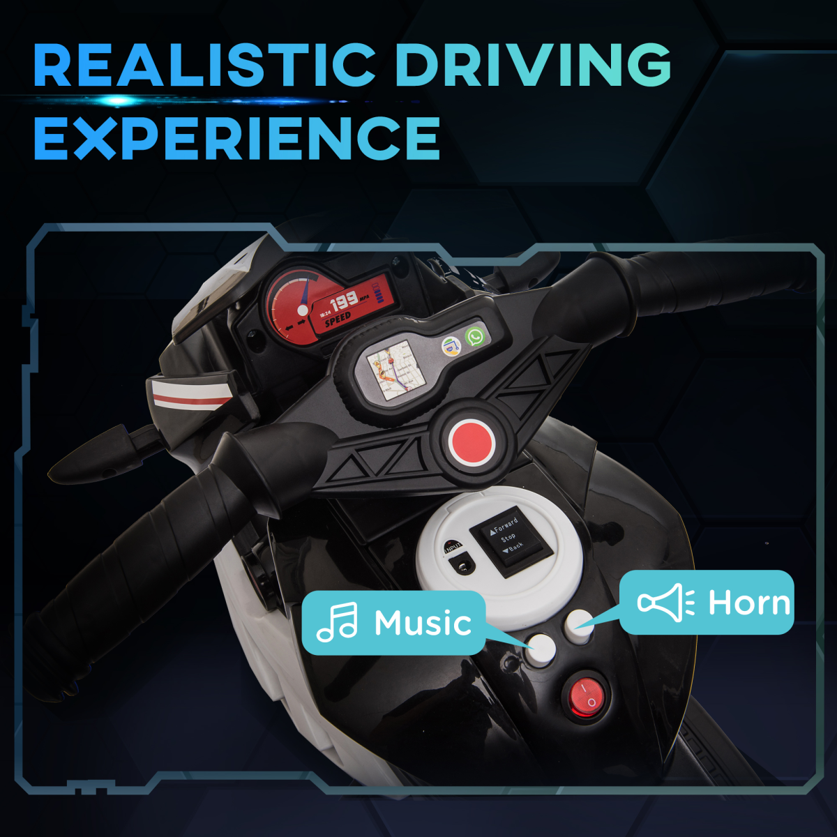 - Realistic Features: Enjoy the added fun of music, a working horn, and headlights that enhance the realistic biking experience. Drives smoothly forwards and backwards!