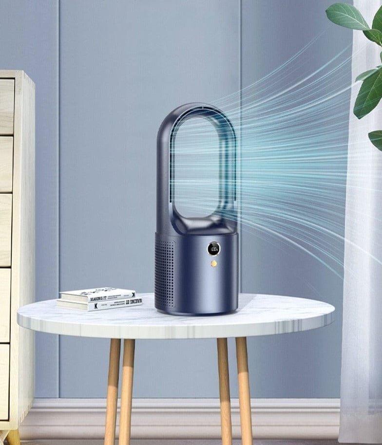 Keep cool in style with our electric wireless bladeless table fan! This modern and sleek fan delivers a strong and invigorating breeze without the clunky blades and loud motor found in traditional fans. Ideal for use at home or in the office, this fan is compact and cordless, allowing you to easily transport it from room to room, or even take it on the go. With its cutting-edge design and powerful cooling capabilities, you'll stay cool and refreshed all day long.