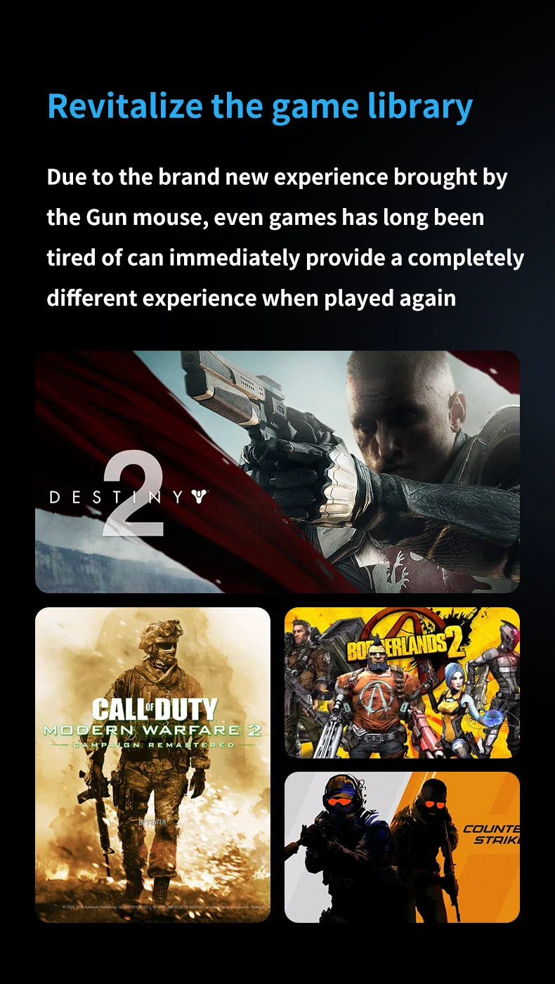 ● After becoming familiar with this Gun mouse, You will have a stronger real feeling, But it takes some time to get used to it at the beginning.
