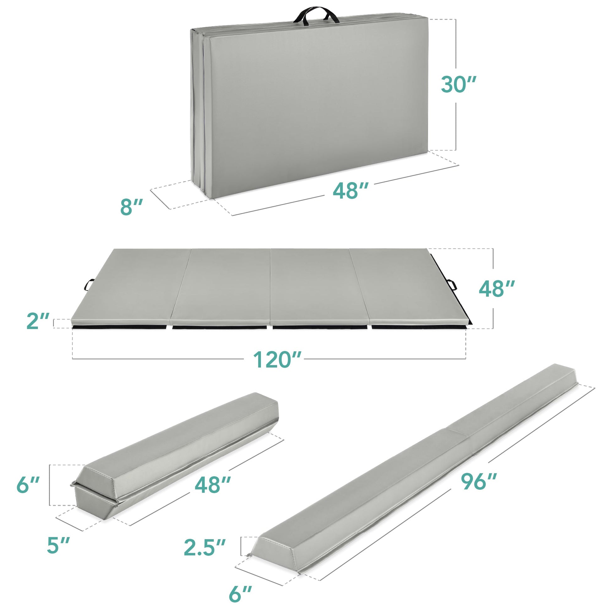 Folding Exercise Fitness Floor Mat w/ Handles & Balance Beam