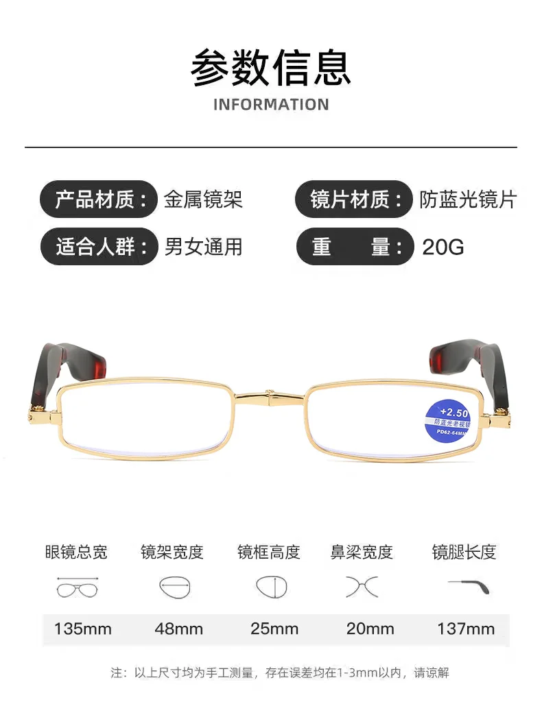 Folding Reading Glasses 360 Degree Rotating Anti Blue Light