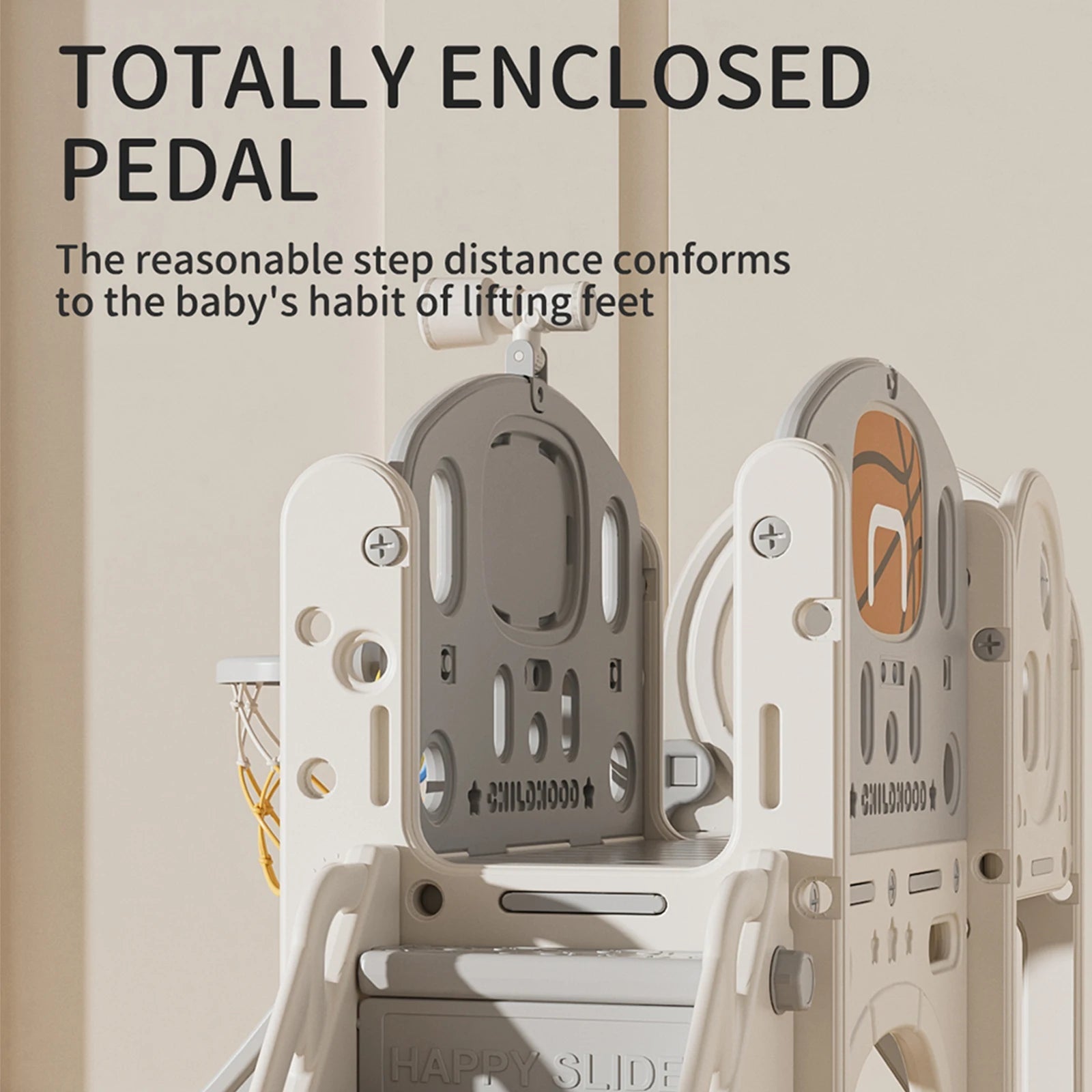 Introducing the KID kid Toddler Slide and Climber Playset – the ultimate playtime companion designed specifically for your little adventurers aged 1-3! Safety is our top priority, which is why this playset is crafted from premium, non-toxic, and recyclable HDPE material. With its smooth, rounded design and absence of sharp edges and corners, it creates a cozy and secure environment for your child to explore, learn, and grow. This multifunctional playset is packed with exciting features including a sturdy stairway, a thrilling slide, built-in storage for toys, a lively ring tossing game, a mini basketball hoop for budding athletes, a spacious deck for imaginative play, a telescope for curious explorers, and a crawling arch at the base for active toddlers. Your child will have endless opportunities for fun and development!