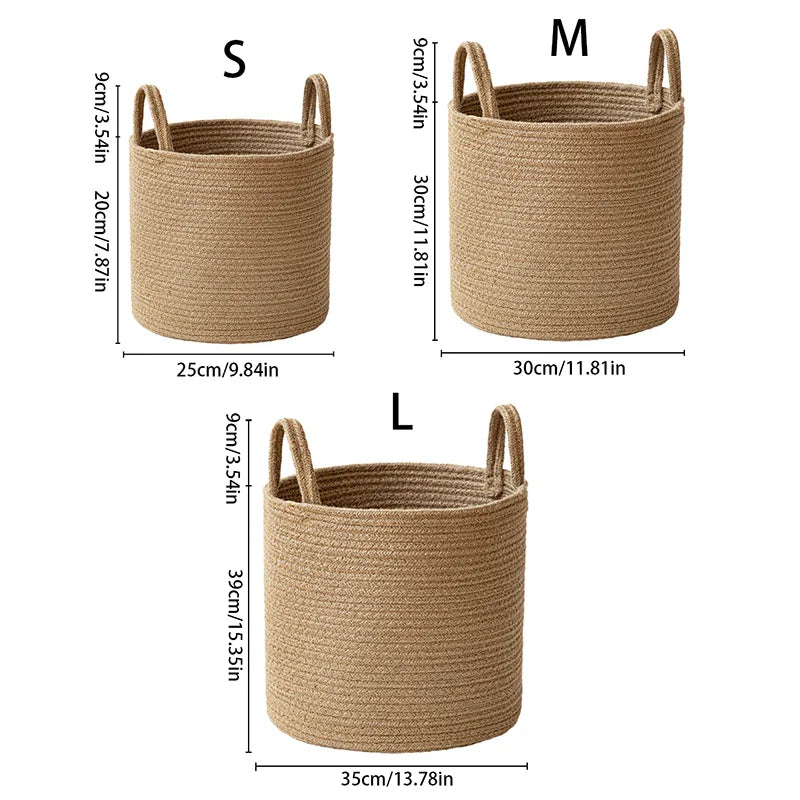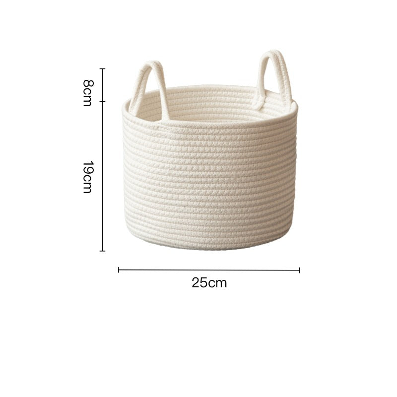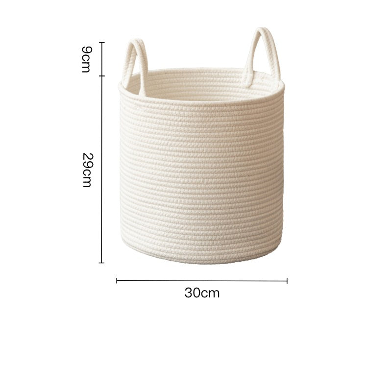 Handmade Round Woven Cotton Rope Foldable Basket with Handles - Beige & White