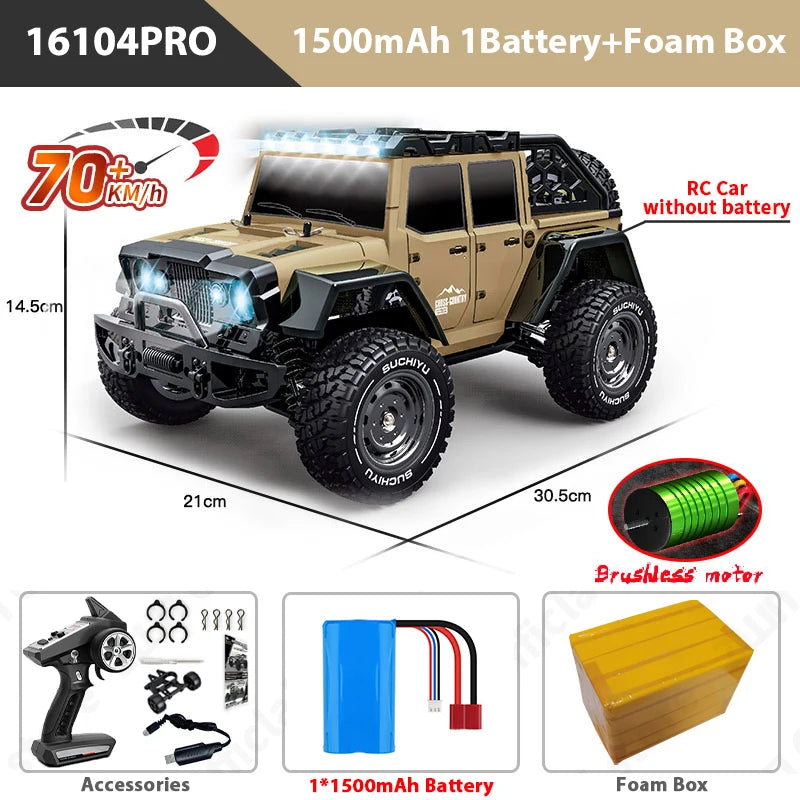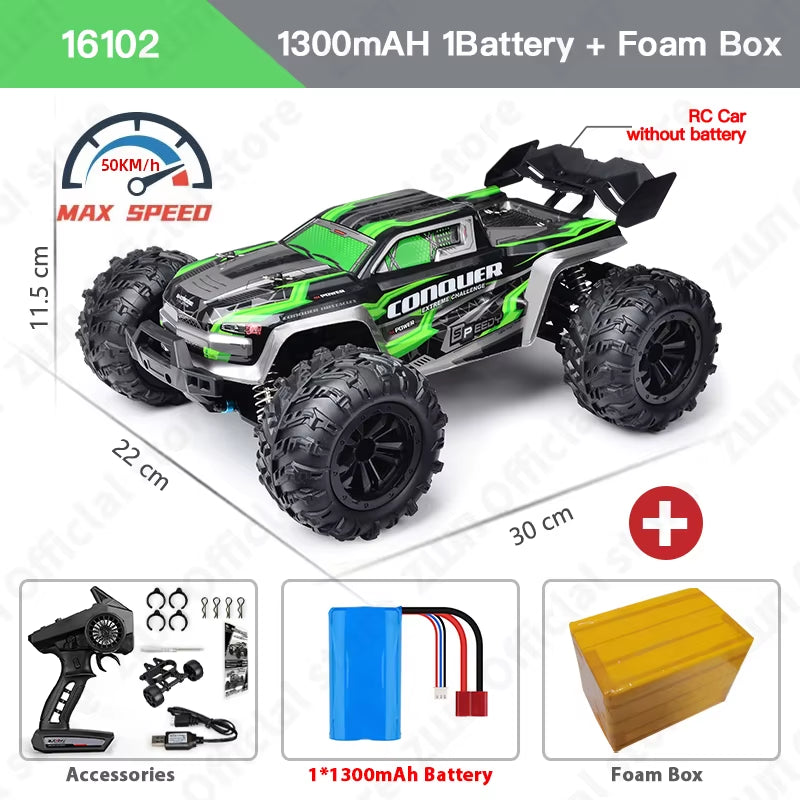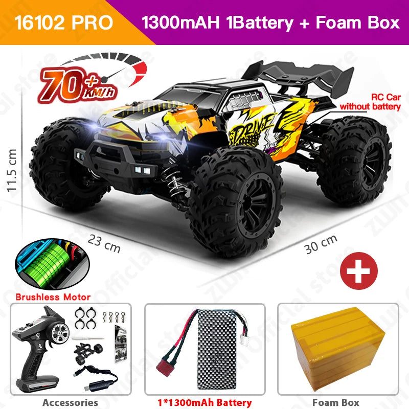 The ZWN 1:16 RC Car is designed for thrill-seekers and young enthusiasts alike, offering an exhilarating driving experience with speeds of up to 70KM/H. This high-speed drift monster truck is perfect for outdoor adventures, allowing users to navigate various terrains such as flat surfaces, sand, mud, and grass. Equipped with a powerful brushless motor and a robust four-wheel drive system, this RC car ensures superior control and performance, making it an ideal choice for both casual play and competitive racing. The LED headlights add a touch of excitement, illuminating the path during evening escapades.