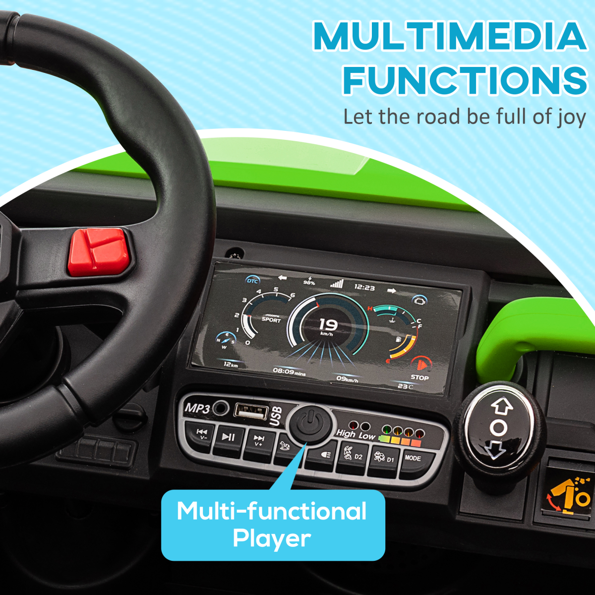 12V Two-Seater Kids Electric Ride-On Car w/ Electric Bucket - Green