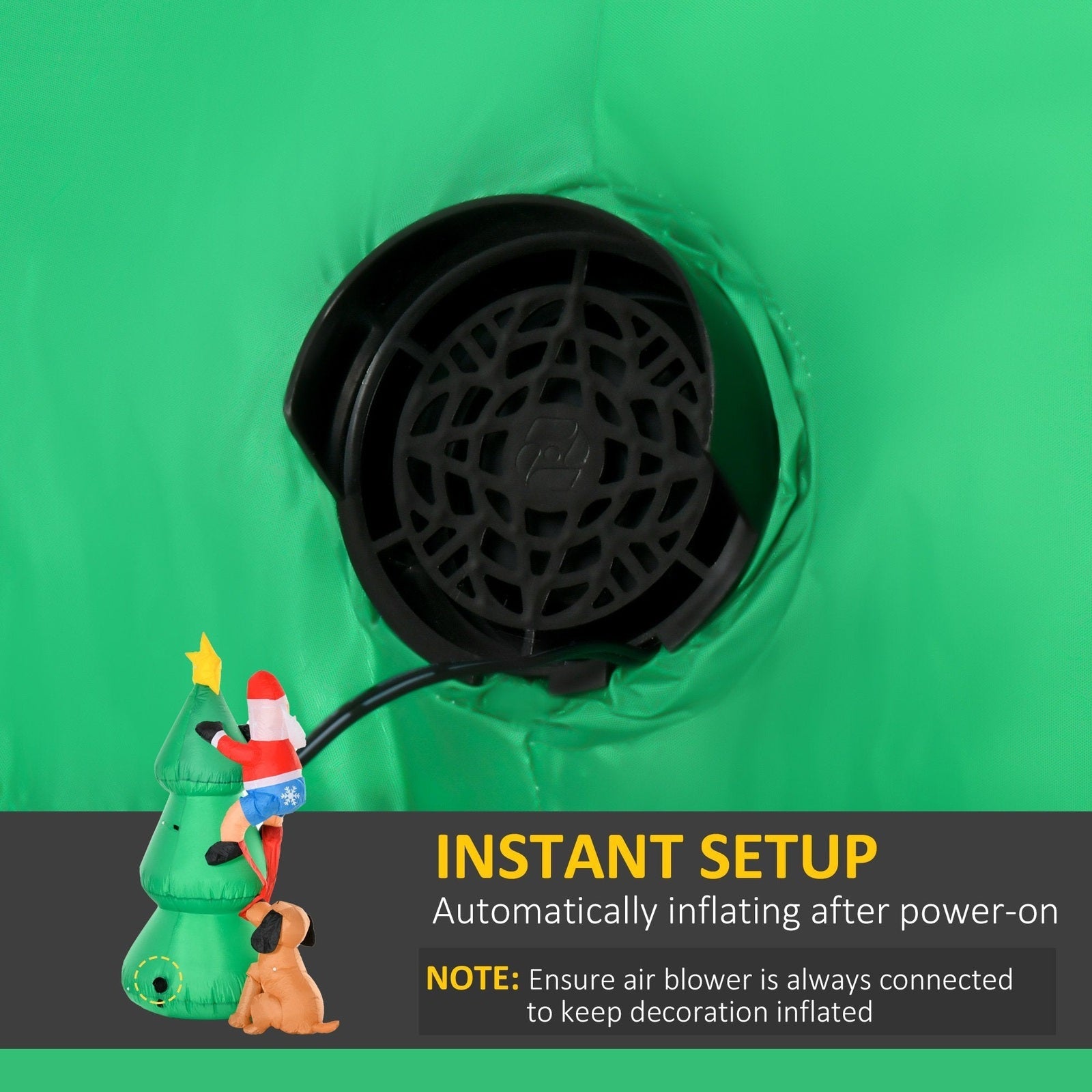 This Xmas Tree & Santa inflatable decoration from Homcom is a premium high-quality product made with care and great for families that love spending christmas together. Easy to inflate and assemble, this inflatable ornament creates an impressive display that will wow your neighbours. A great decoration for your garden, it’s sure to add Christmas cheer to any outdoor area. Constructed from a lightweight and soft polyester material.