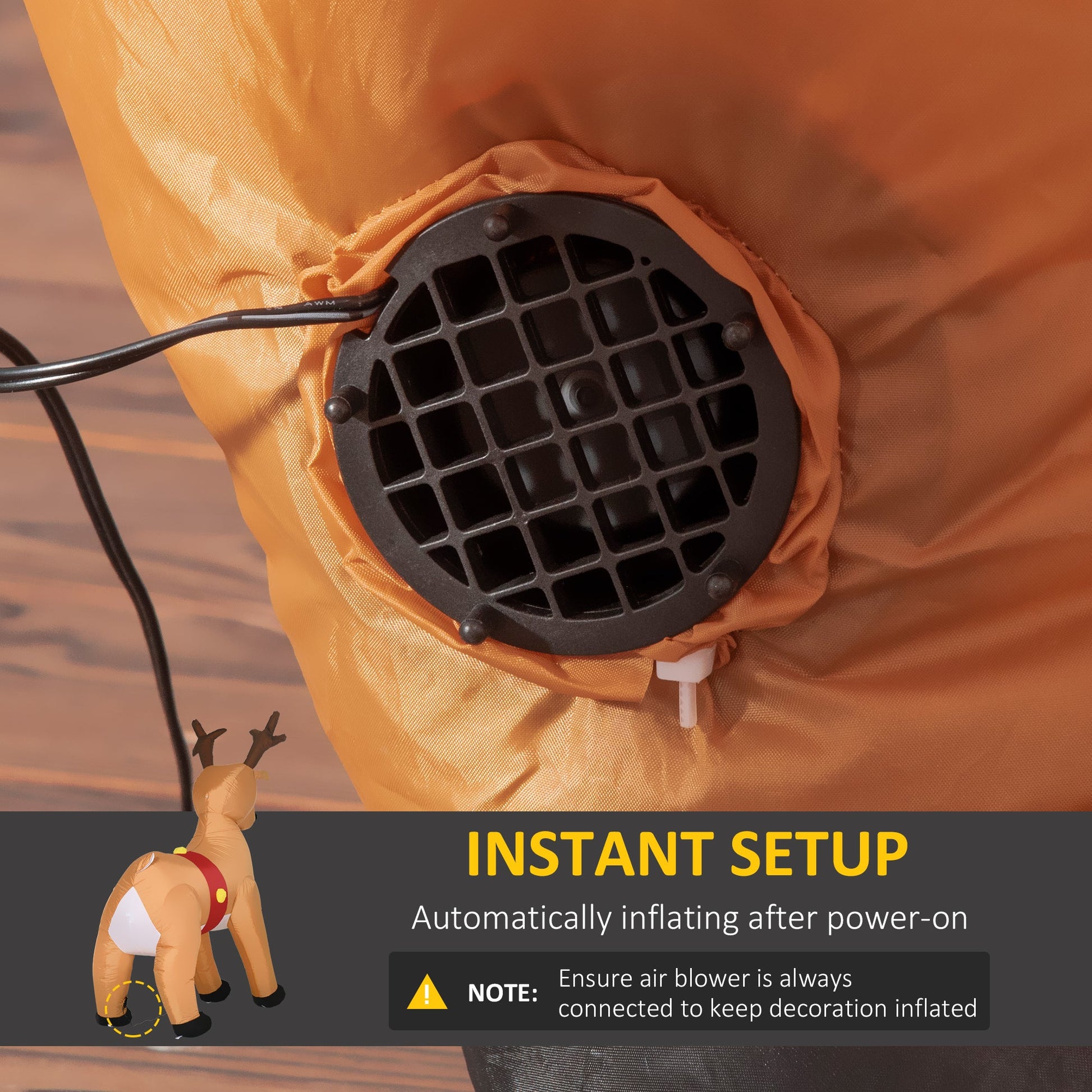 Homcom Lighted Christmas Inflatable Reindeer Blow Up Outdoor Decoration for Garden