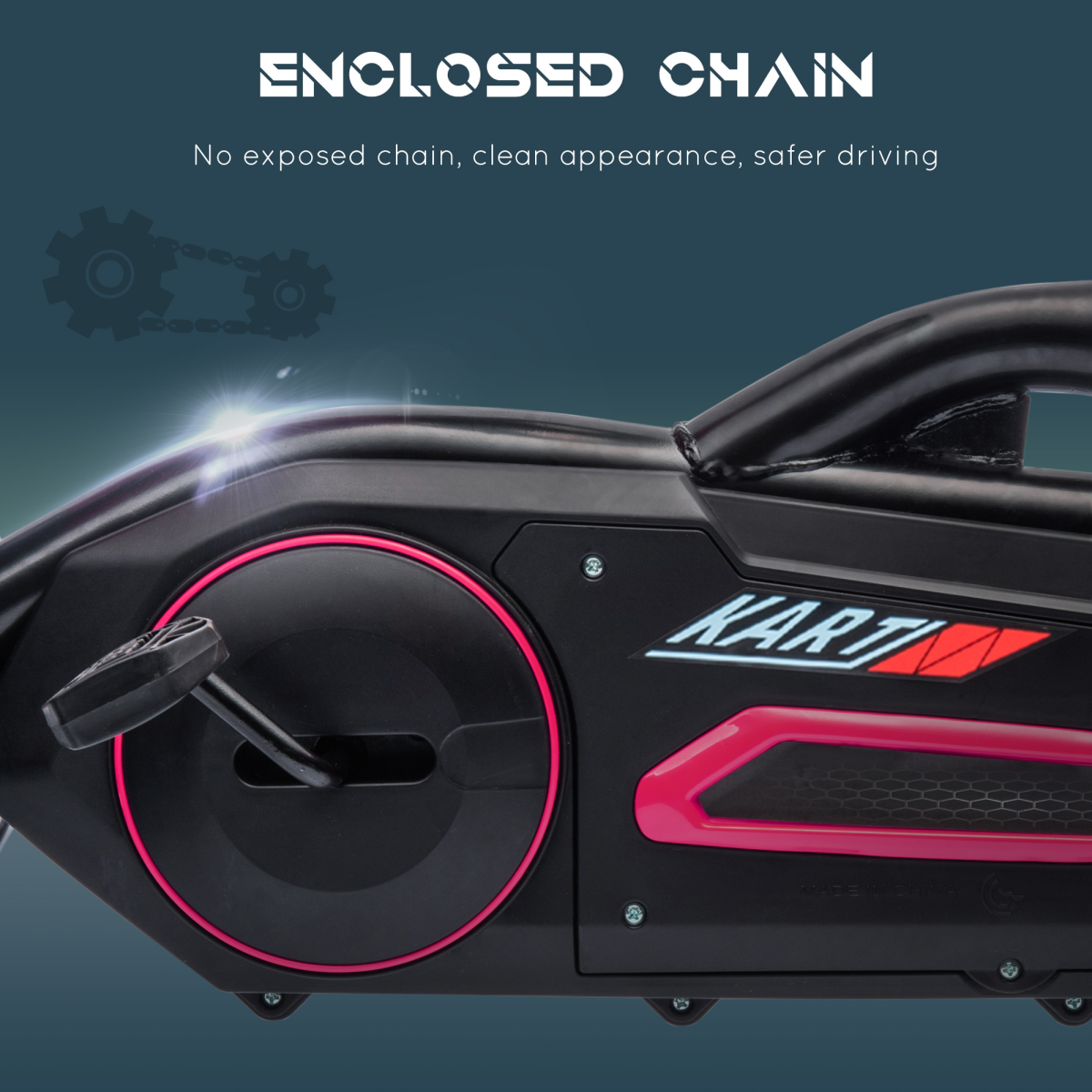 - "Children Pedal Go Kart with Adjustable Seat, Handbrake - Pink" - Description: - This go-kart can go forward and reverse. - The handbrake keeps it in place when needed. - Four-position adjustable seat, which can move by 14cm - comfortable for different heights and ages. - Front swing axle and EVA wheels ride smoothly on different grounds, including cement, brick, gravel, and asphalt roads. - Use the pedals to move the go-kart, which promotes physical activity and develops motor skills. - Maximum load: 30kg. - Assembly required. - Colour: Pink and black. - Material: PP, metal, and EVA. - Dimensions: Height - 58.5 cm, Length - 100 cm, Width - 58 cm. - Seat dimensions: Height - 30.5 cm, Width - 32 cm, Depth - 16 cm. - Backrest dimensions: Height - 30 cm, Width - 32 cm. - EVA wheels diameter: 25 cm. - Weight capacity: 30 kg. - Recommended age: 3-8 years. - Qualification: EN71-1-2-3. - Item label: 370-286V00PK. - NOTE: Children must be supervised when riding this go-kart.
