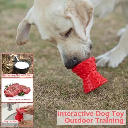 - Made of natural rubber and blended with the aroma of beef. When the dog plays with it, it is safe and reliable, but also increases the dog's appetite