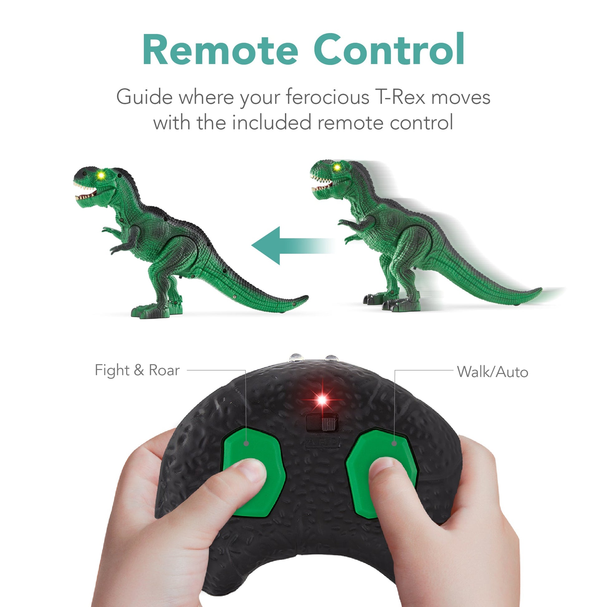 Kids Remote Control Dinosaur T-Rex w/ Light-Up LED Eyes, Roaring Sounds