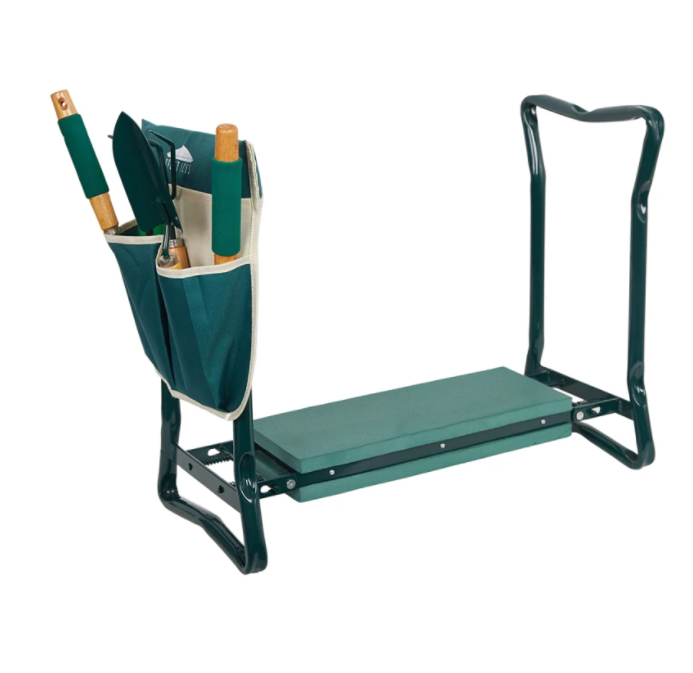 Complimentary Tool Pouches: Attach them to this garden chair with Velcro, and have your clippers, pullers, and spades right by your side.