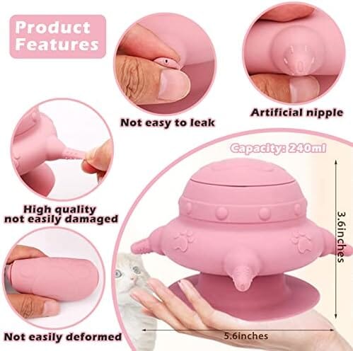 - 【Scientific and Practical Design】- The silicone puppy feeder milk bowl comes with a raised base that makes it easy for your pet to place their feet and feel comfortable while sucking. At the same time, the bottom of the puppy feeder bottle is designed with strong suction cup, which can be firmly adsorbed on the ground, not only non-slip, but also prevent the liquid from spilling out.