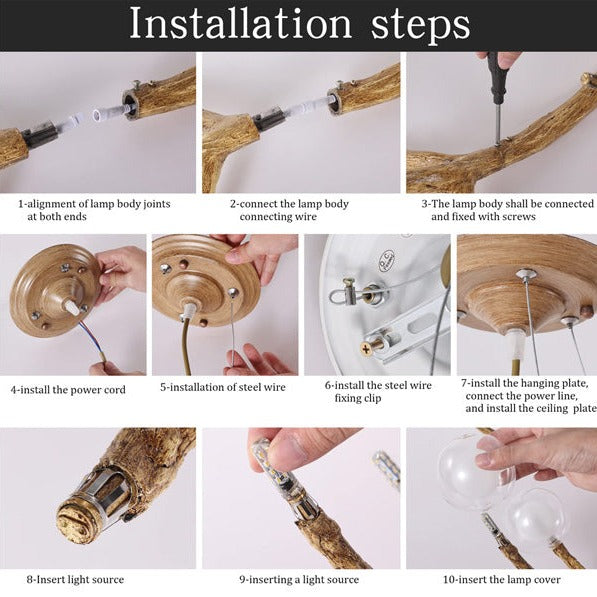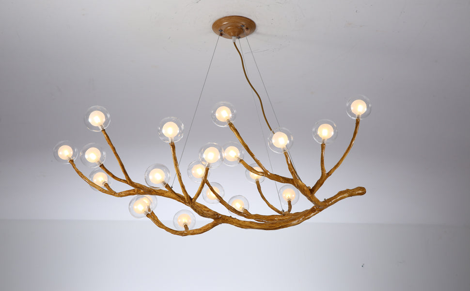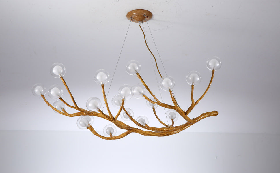 Add a modern touch to your home with this stunning chandelier. It features a tree branch inspired design with beautiful glass bubbles in 4 sizes to choose from. This Modern Heritage Tree Branch Chandelier is designed with country-style imitation wood made from resin and modern double layer glass creating a warm and inviting atmosphere. This chandelier is fit for flat or sloping ceilings and the length of the wires can be adjusted up to 100cm.