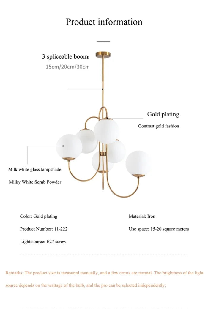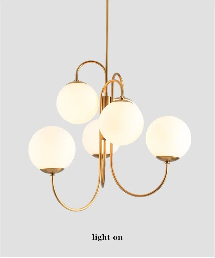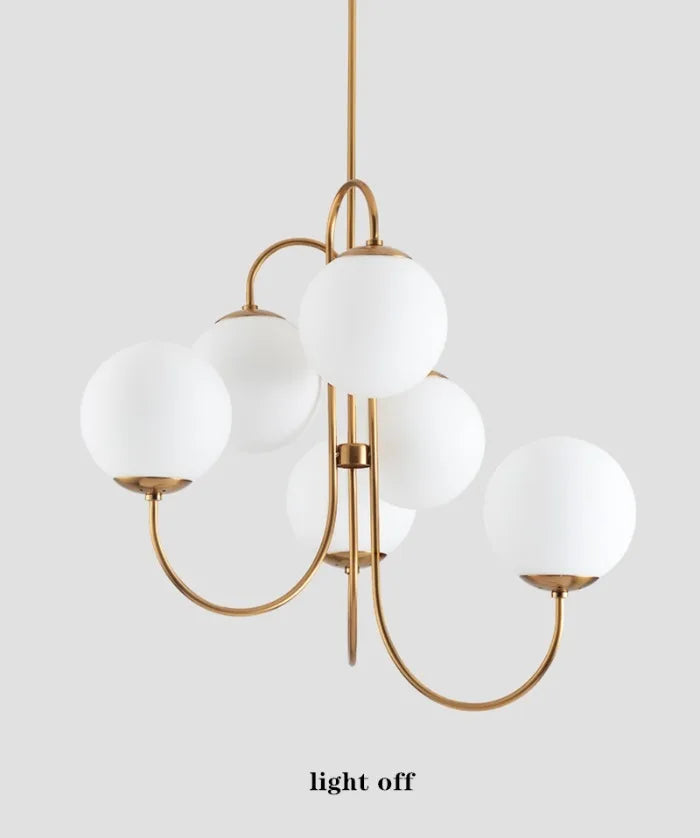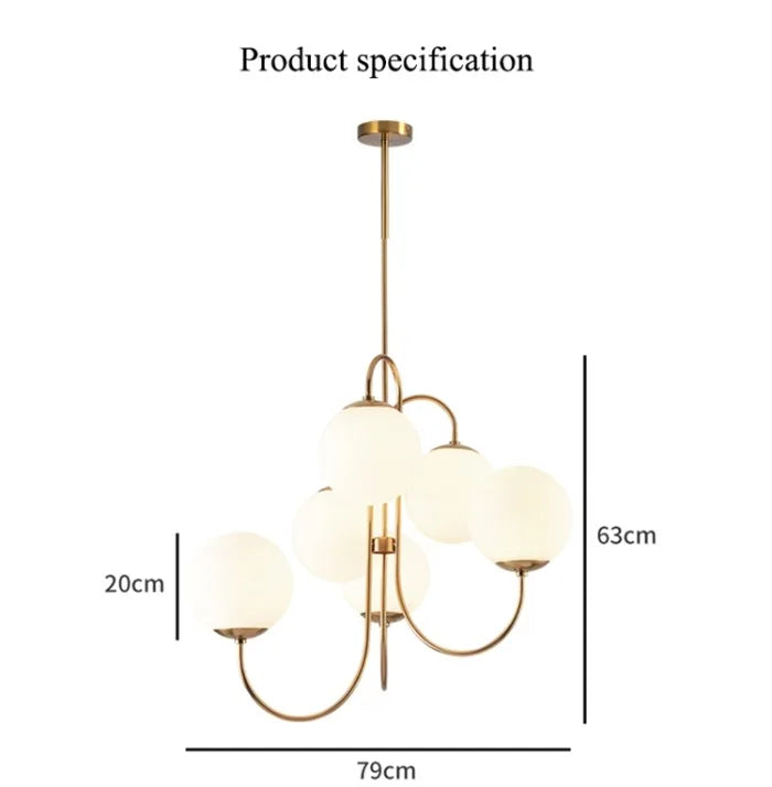 Modern Scandi Opal LED 6 Arms Glass Ball Pendant Chandelier