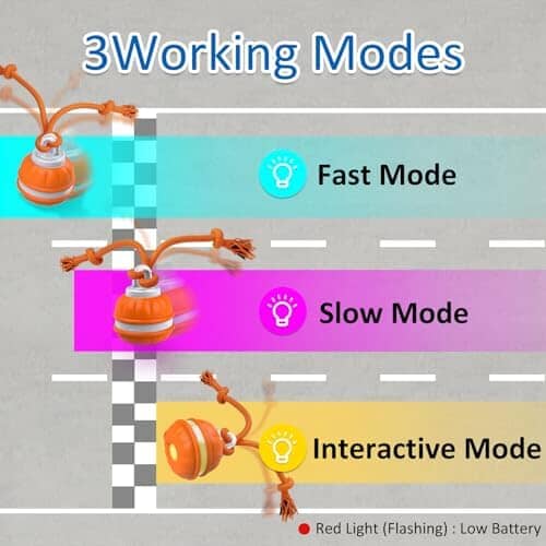 - Three Mode: Fast Mode (blue light), the peppy pet ball for dogs will automatically fast rolling for 5 minutes, then go into standby mode. Slow Mode (purple light), the interactive dog toys balls will slow moving for 5 minutes, then go into standby mode. Interactive Mode (purple light), the active rolling ball for dogs only activate when touch