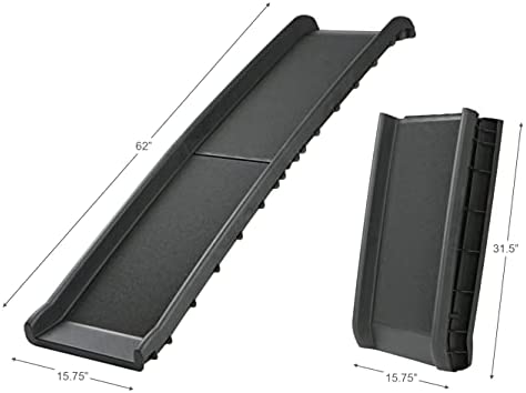 - Multi-purpose ramp with non-slip coating and side rails for safety