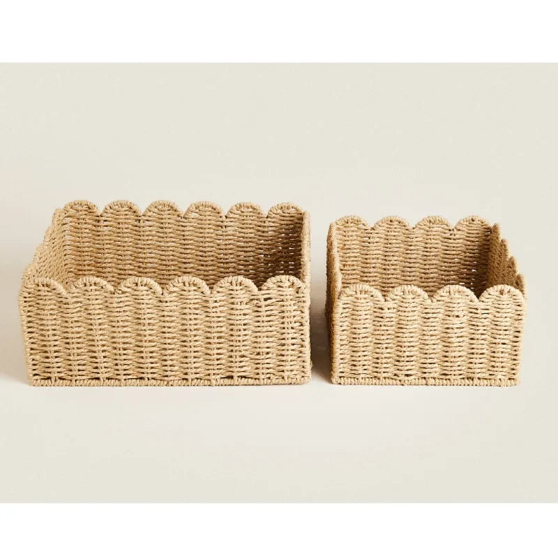 Natural Scallop Woven Wicker Storage Basket - 3 Sizes
