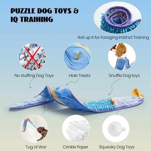 - Mental & Physical Exercise: This snuffle dog toy takes treat time to the next level. With hidden treat pockets in 3 sizes and velcro design, dogs must explore and untie the eel to reveal hidden treats. This dog puzzle dog toy encourages foraging instinct training and snuffle training, turning mealtime into a mentally stimulating challenge.