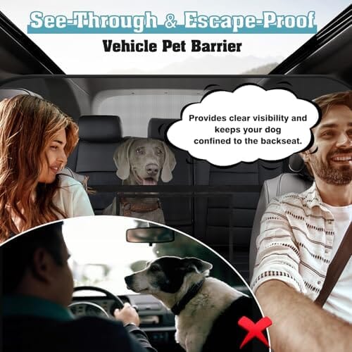 - See-Through & Anti-Scratch Mesh: The mesh dog car barrier provides clear visibility, allowing both you and your dog to stay aware of each other. Its durable, anti-scratch fabric ensures optimal airflow, keeping the rear area well-ventilated and comfortable for your pet.