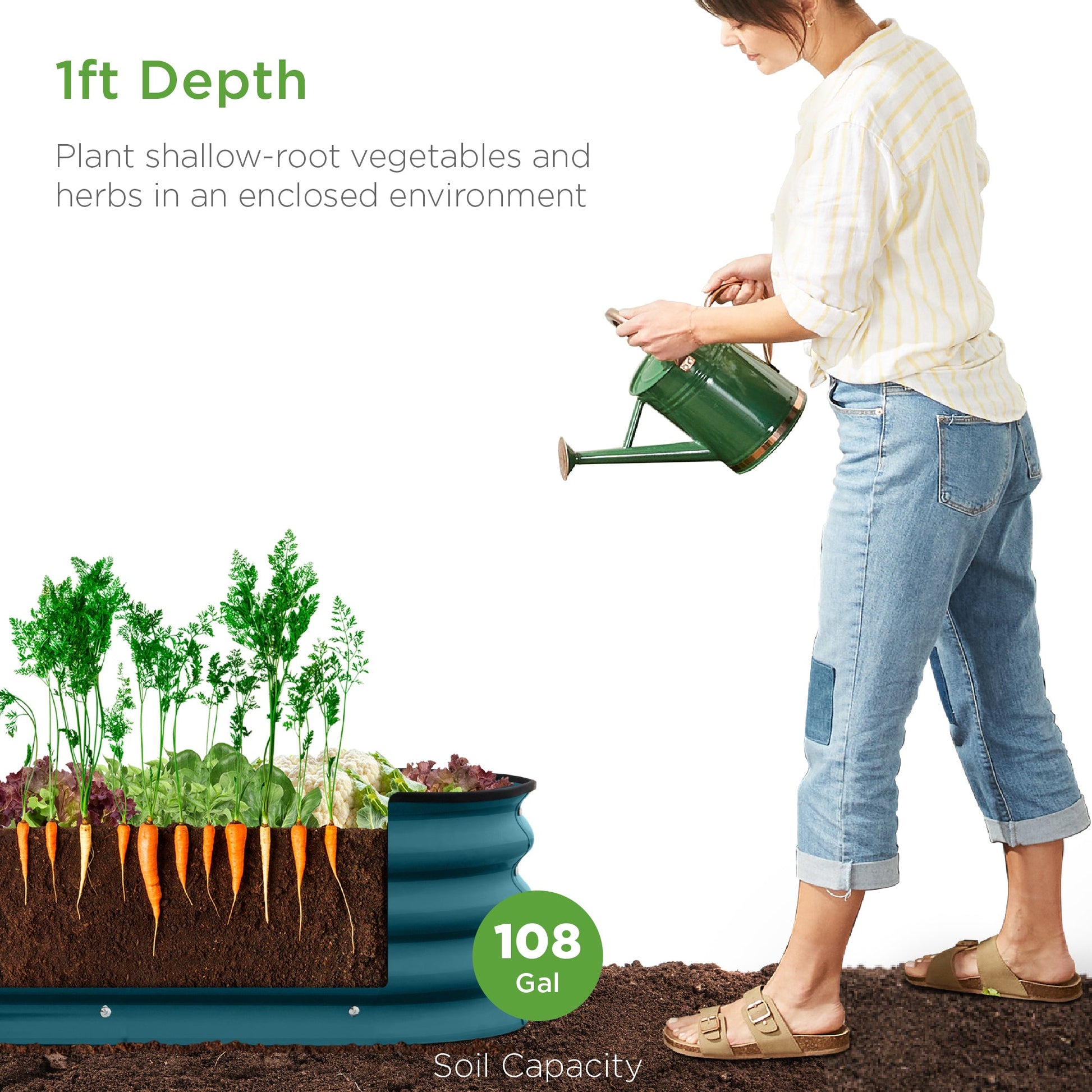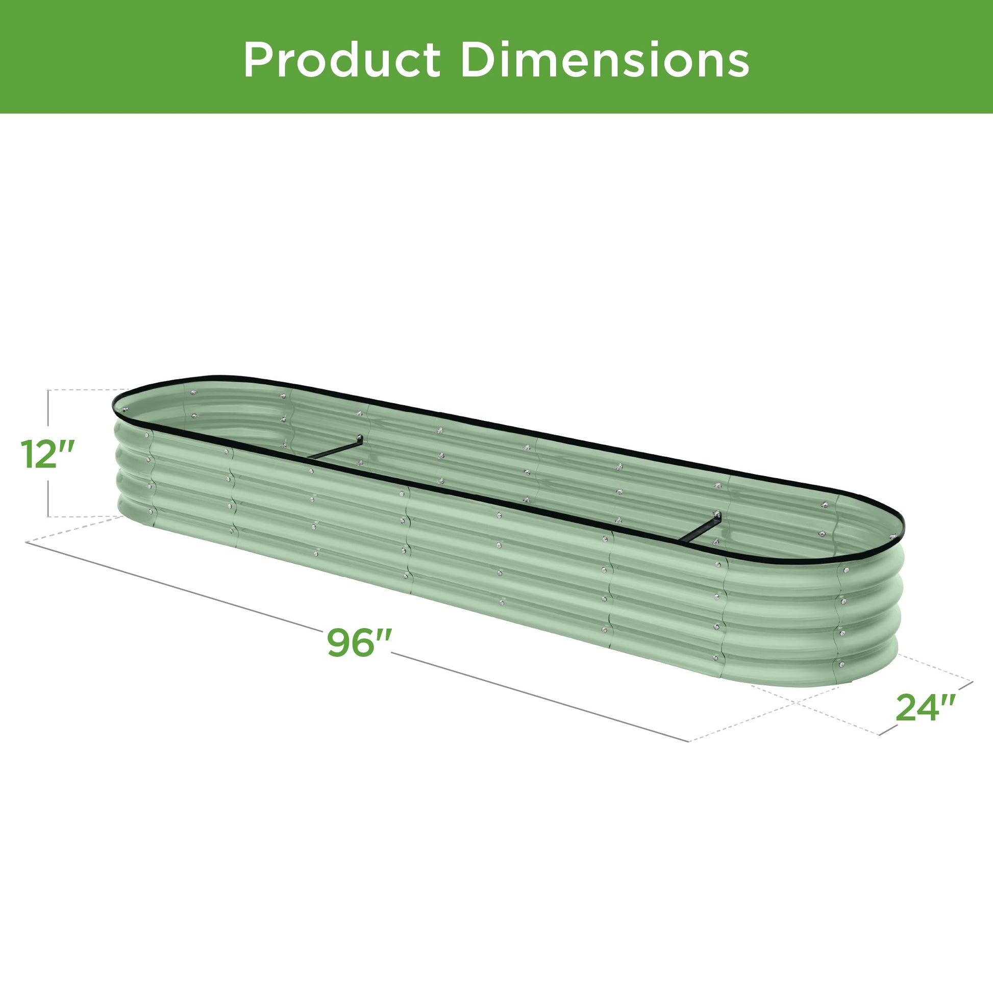 Outdoor Metal Raised Oval Garden Bed for Vegetables, Flowers - 8x2x1ft
