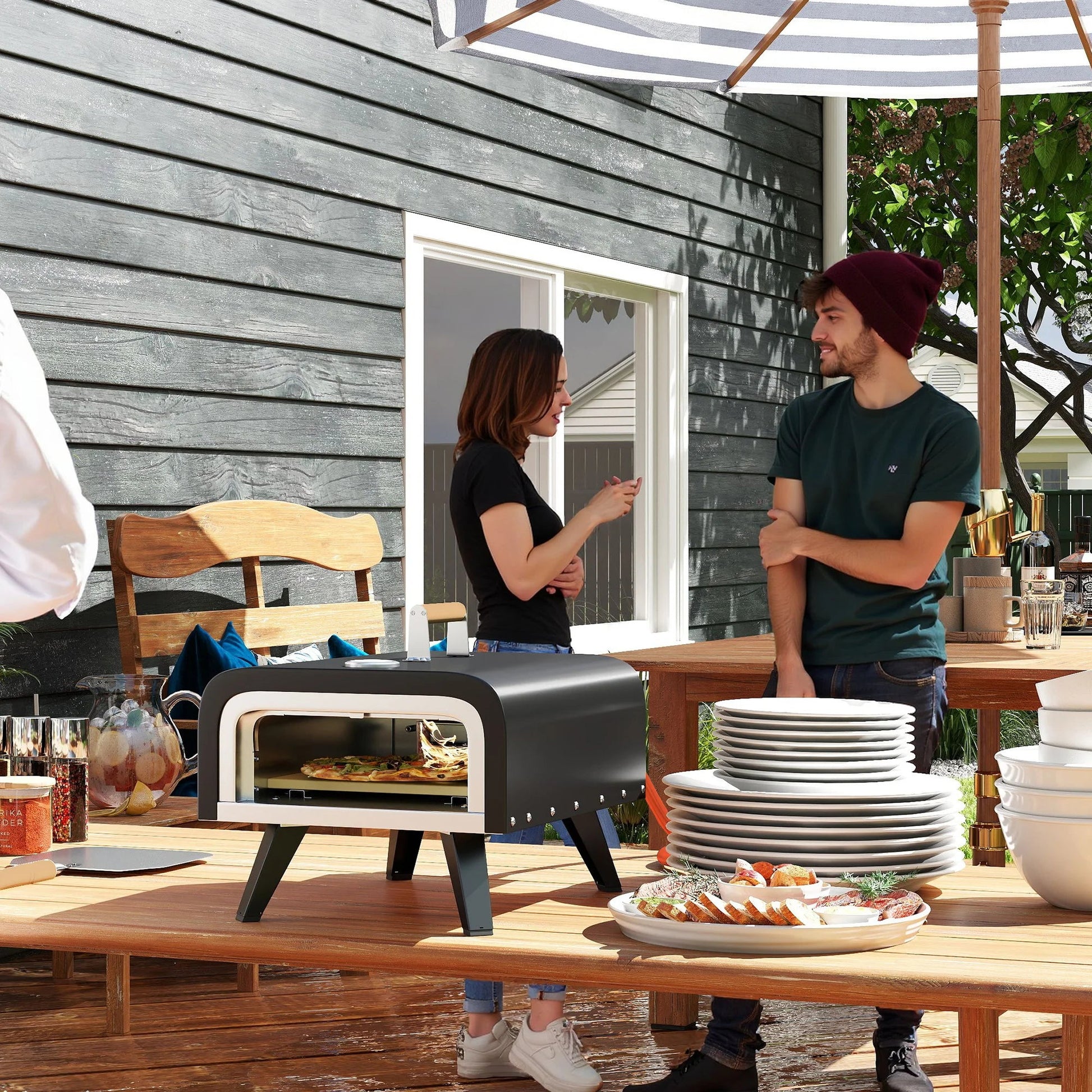 Fresh and crispy pizza comes hot from your home - this Outsunny garden pizza oven. Gas powered to provide consistent heat, for perfectly-cooked pizza every time. The 12" stone holds a standard eight-slice pizza - to enjoy food with family and friends. Pizza peel included to move. ● 12" pizza stone for a standard eight-slice pizza. Also ensures an evenly-cooked pizza