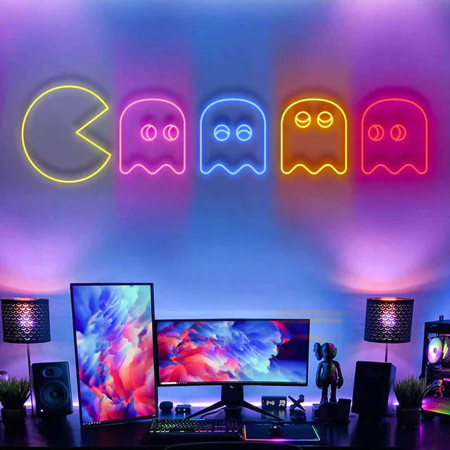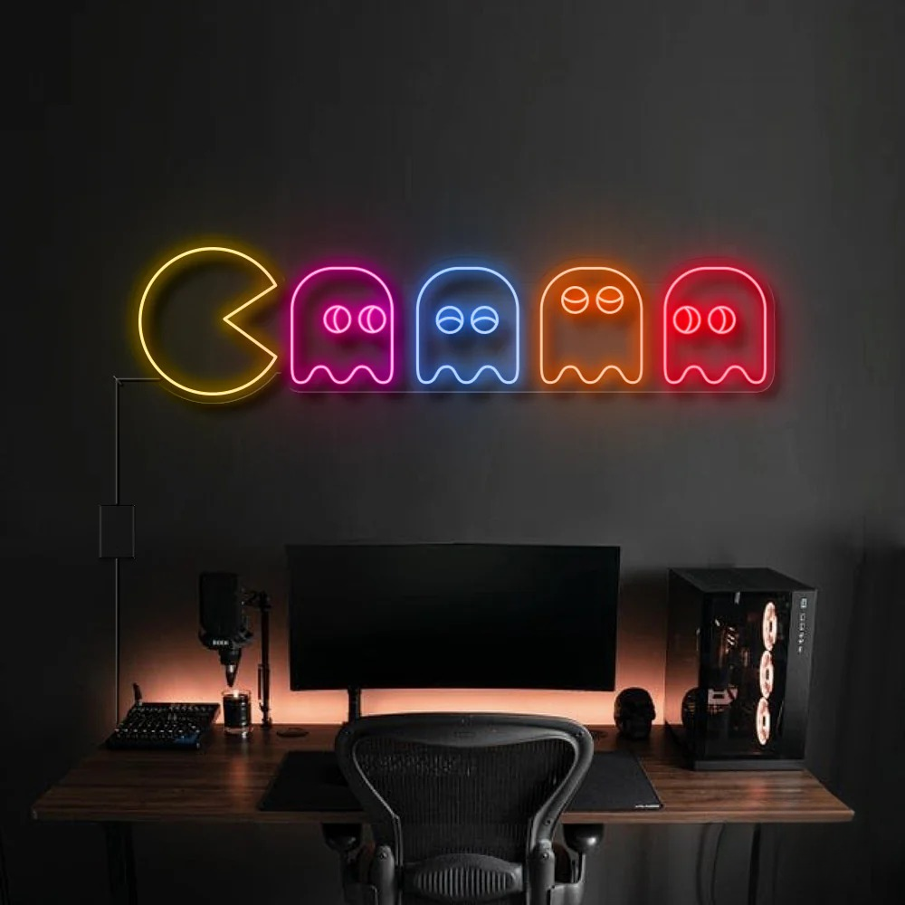 It is perfect for game lovers and nostalgia seekers, this handcrafted neon sign lights up with the iconic Pacman and ghosts, adding a playful touch to any room.
