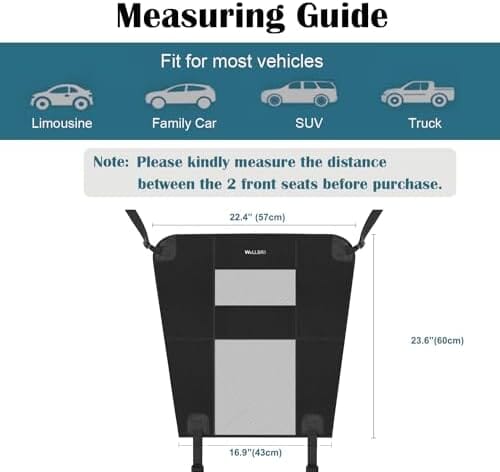 Versatile Compatibility: Designed to fit most cars, SUVs, and trucks, our Dog Car Barrier is the perfect solution for pet owners on the go. With its adjustable strap clips and generous size of L24” x W24”, it effectively covers the gap between the front two seats, ensuring a secure barrier for your furry friend.
