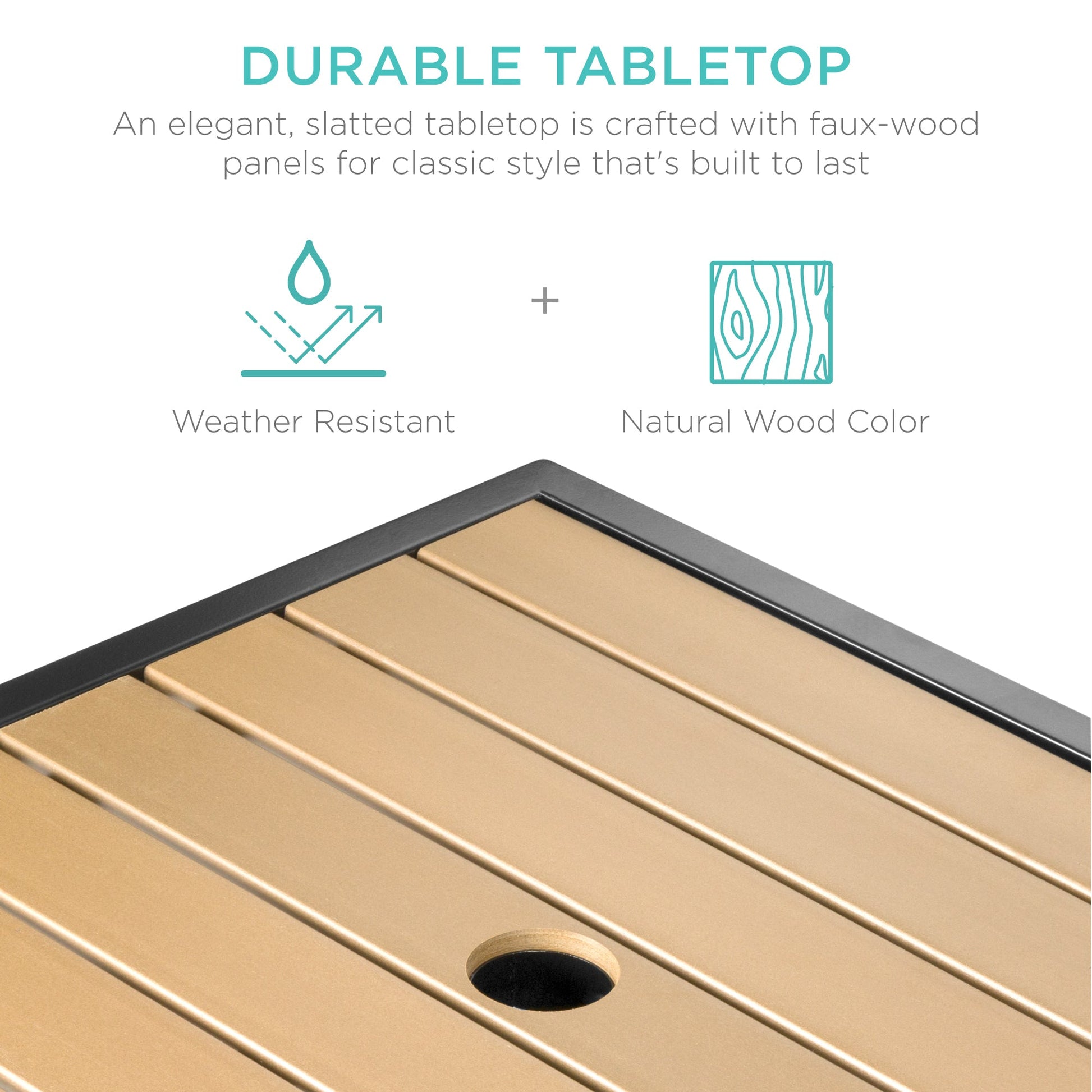 Outdoor Wicker Patio Side Table Accent Furniture w/ Umbrella Hole