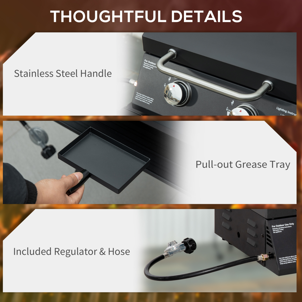 2 Burner Gas BBQ Grill Portable Folding Tabletop Barbecue with Lid Thermometer - Black