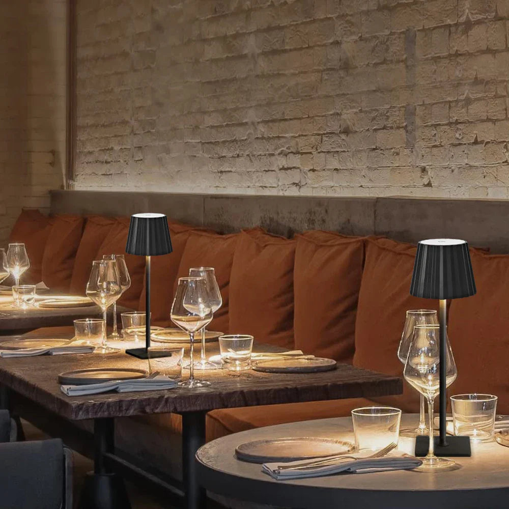 Add warmth and style to any space with our Portable Cordless LED Table Lamp, designed for both indoor and outdoor use. Featuring a timeless pleated lampshade and a sleek, minimalist base, this rechargeable lamp offers both style and versatility — perfect for dining tables, bedside tables, patios, and garden gatherings.