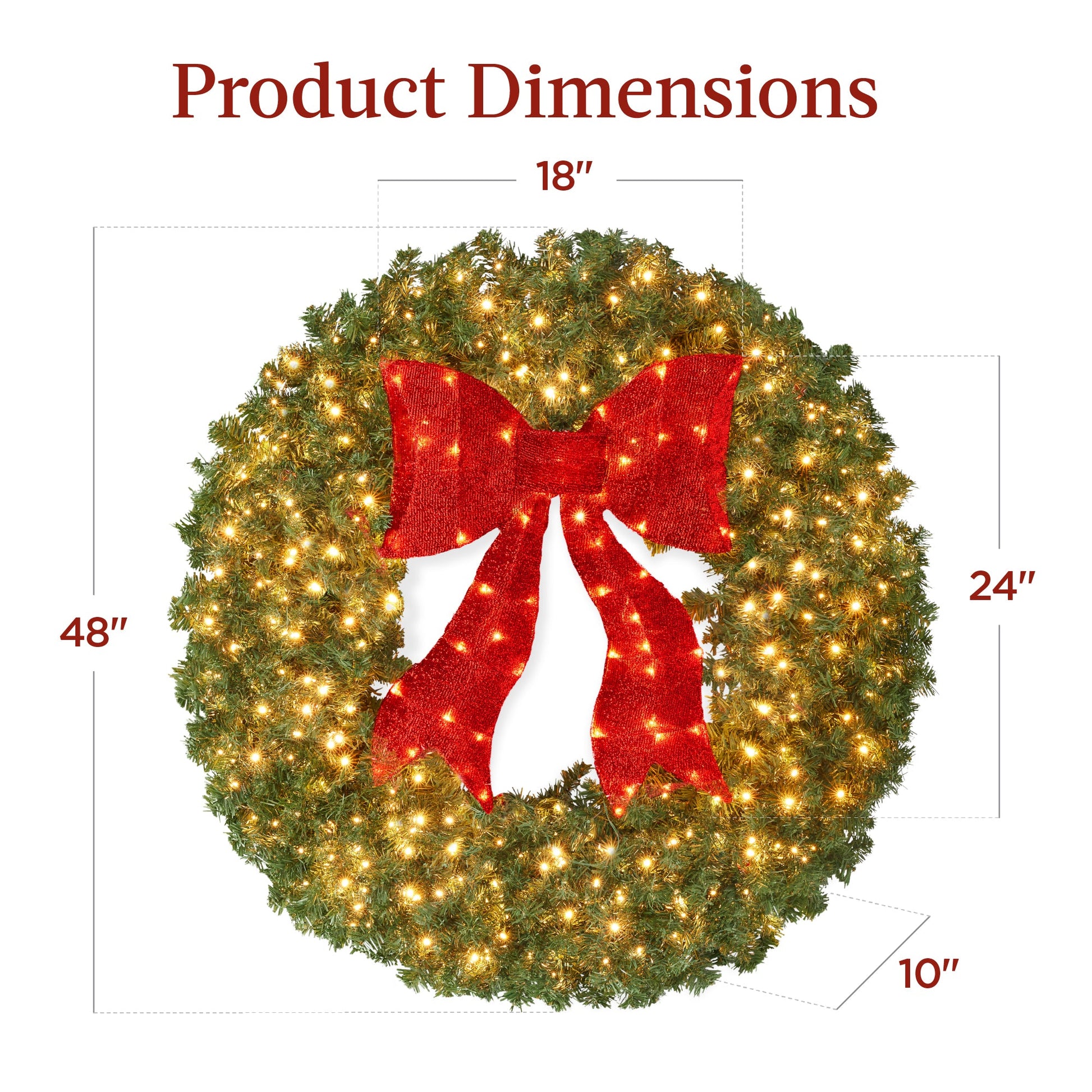 Pre-Lit Artificial Fir Christmas Wreath w/ Red Bow, LED Lights