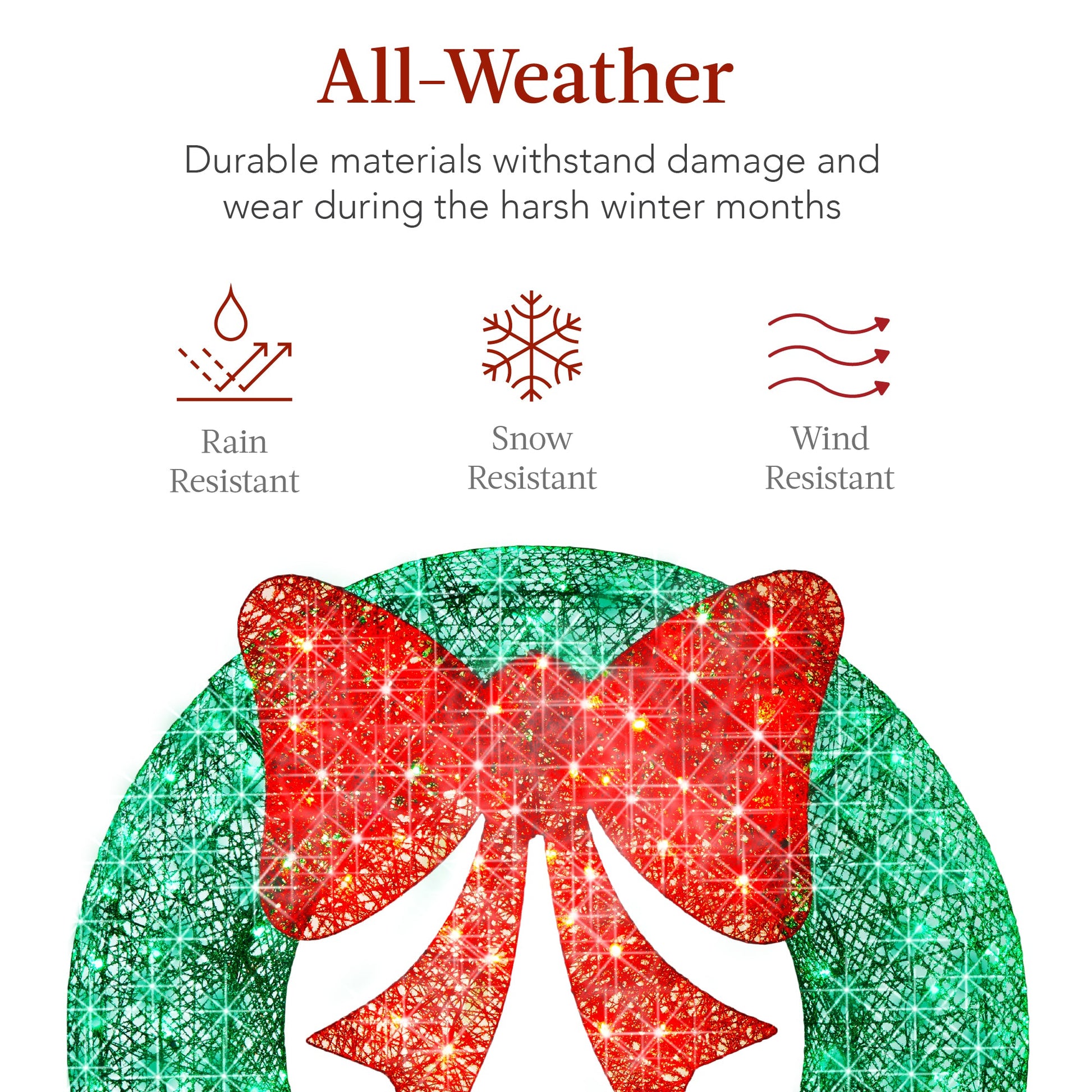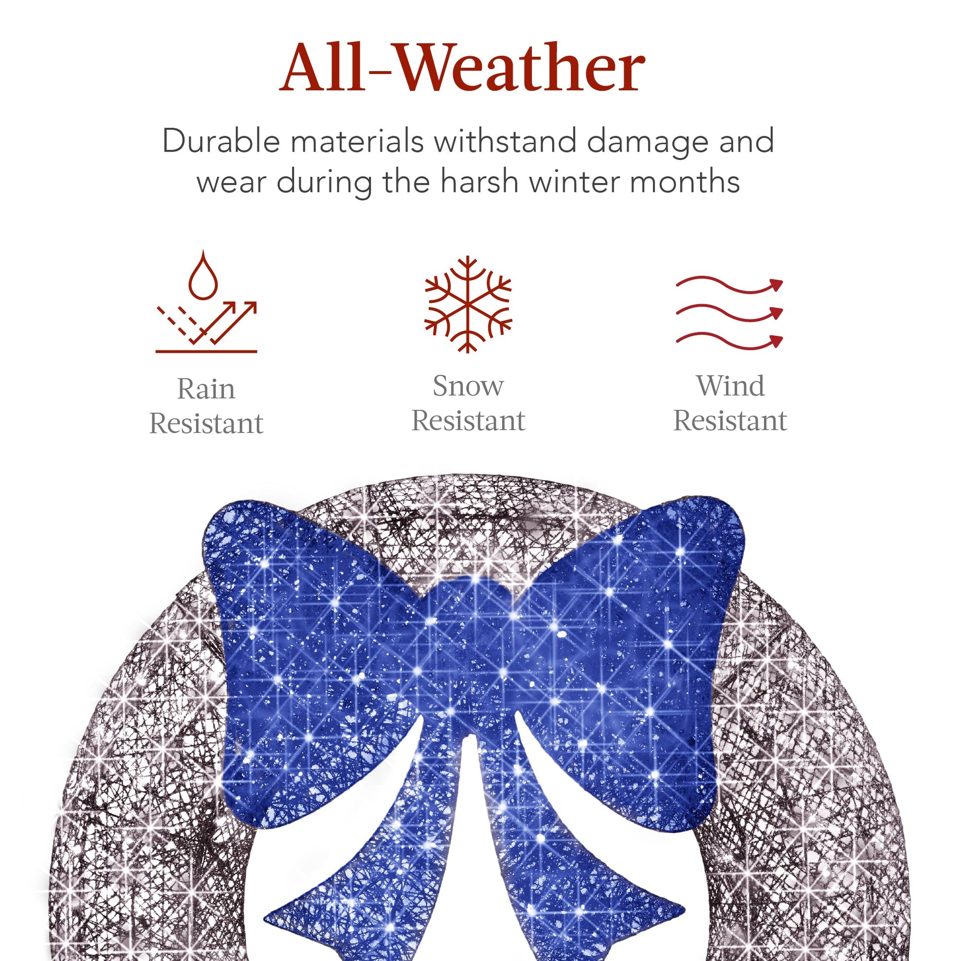 Pre-Lit Outdoor Christmas Wreath, LED Metal Holiday Decor w/ Bow - 60in