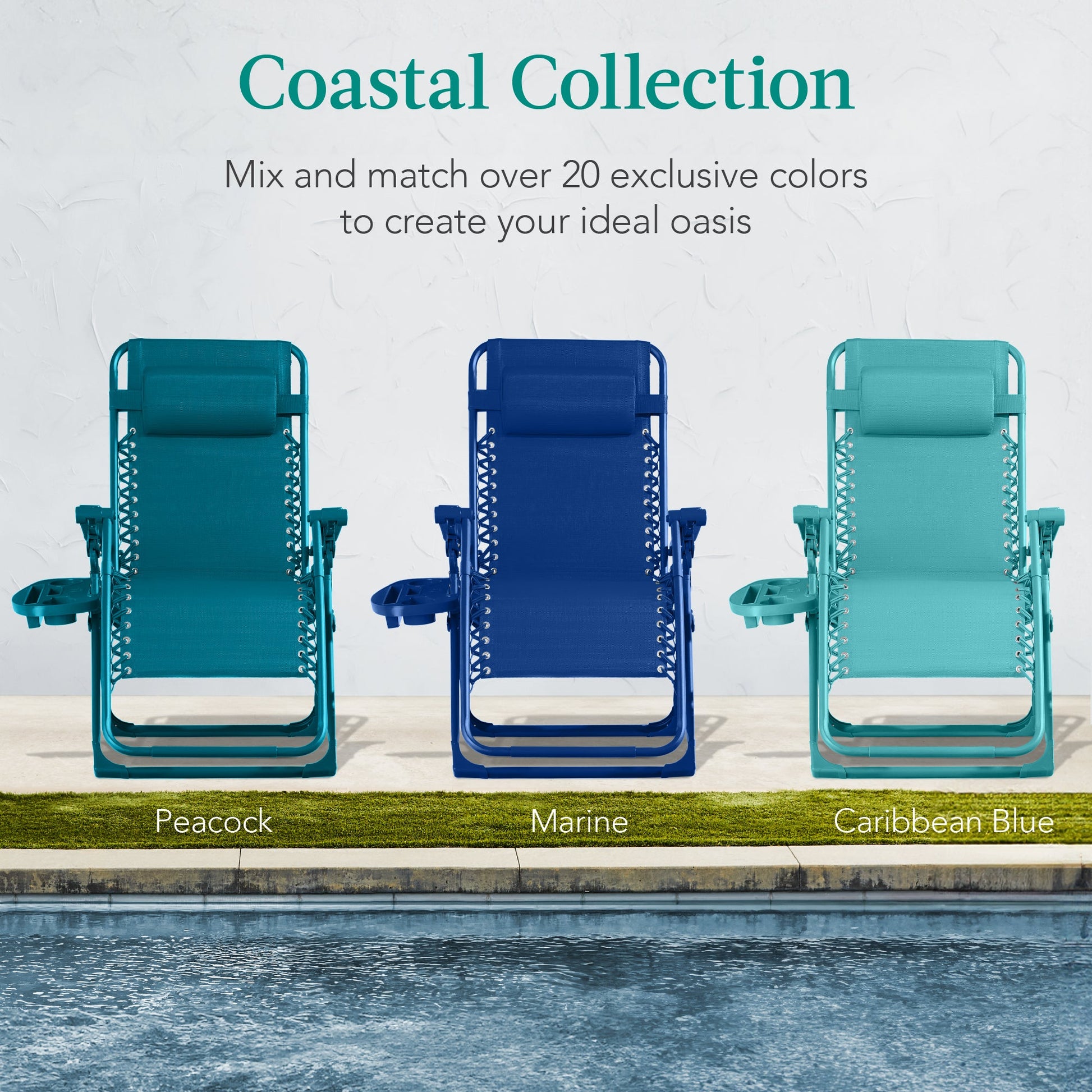 Monochromatic Zero Gravity Patio Chair Recliner w/ Side Tray, Headrest
