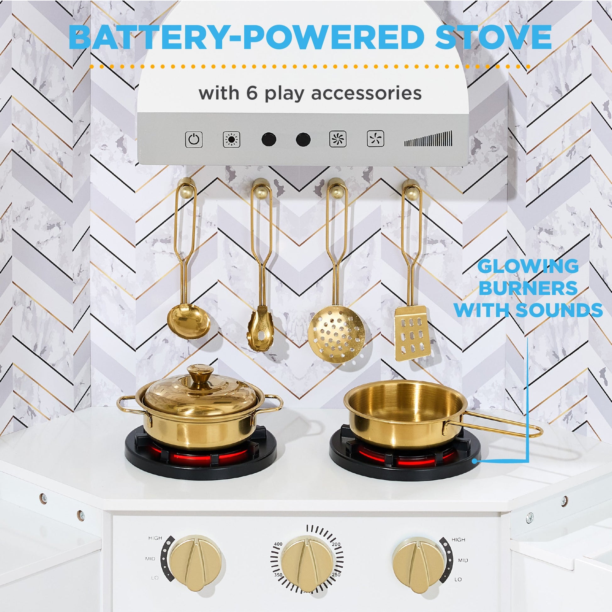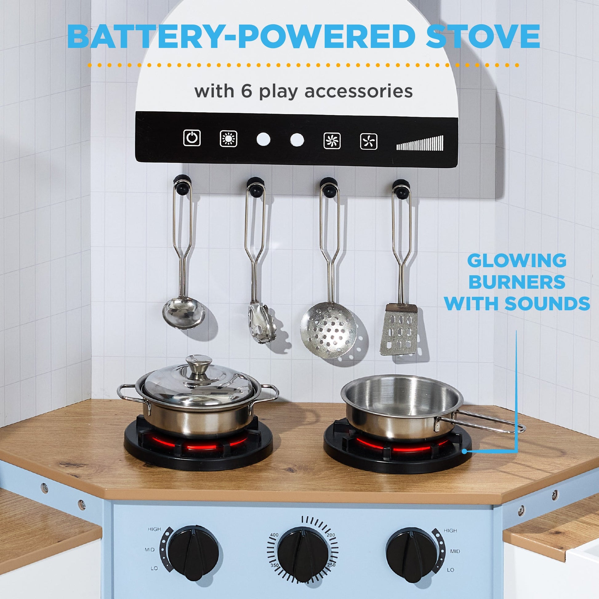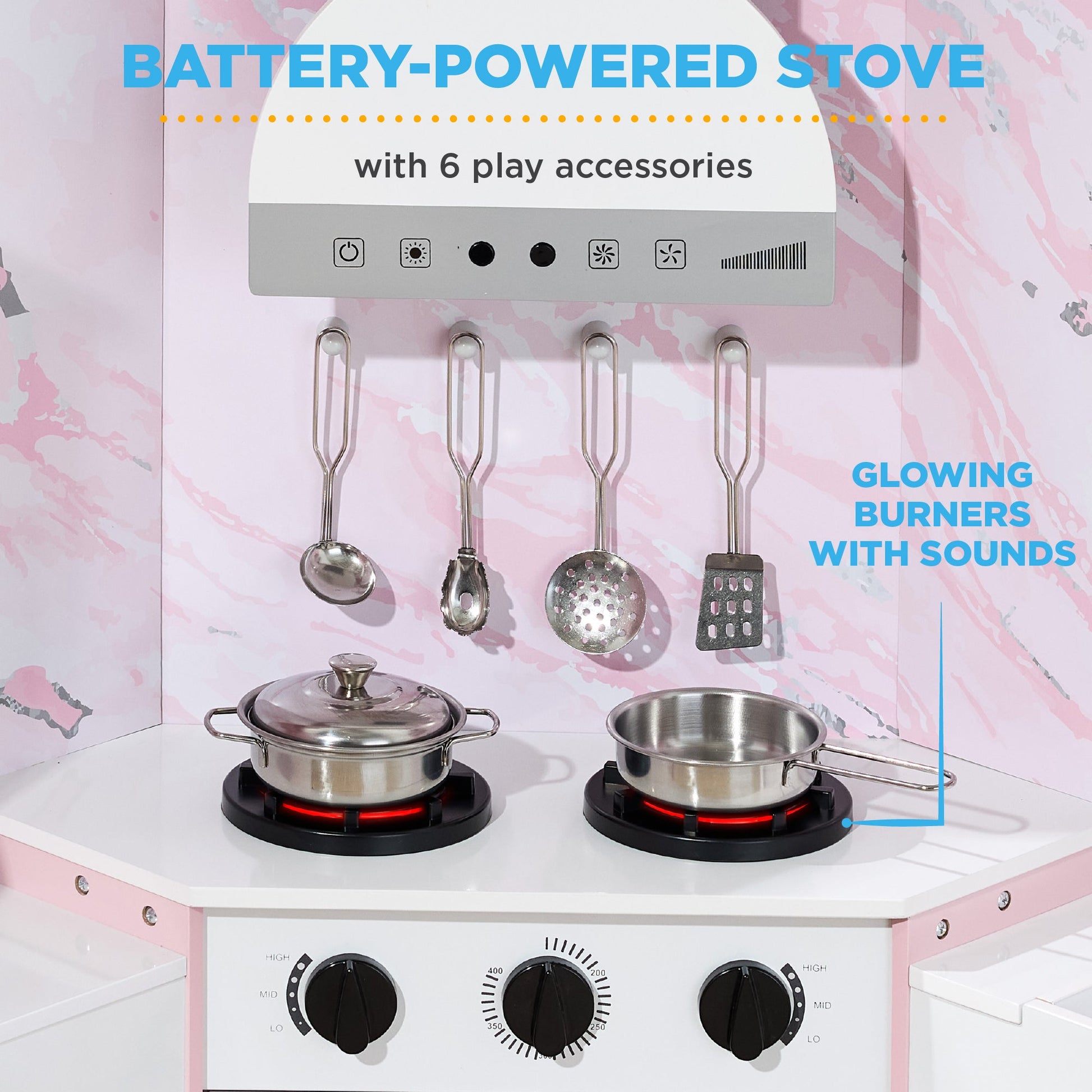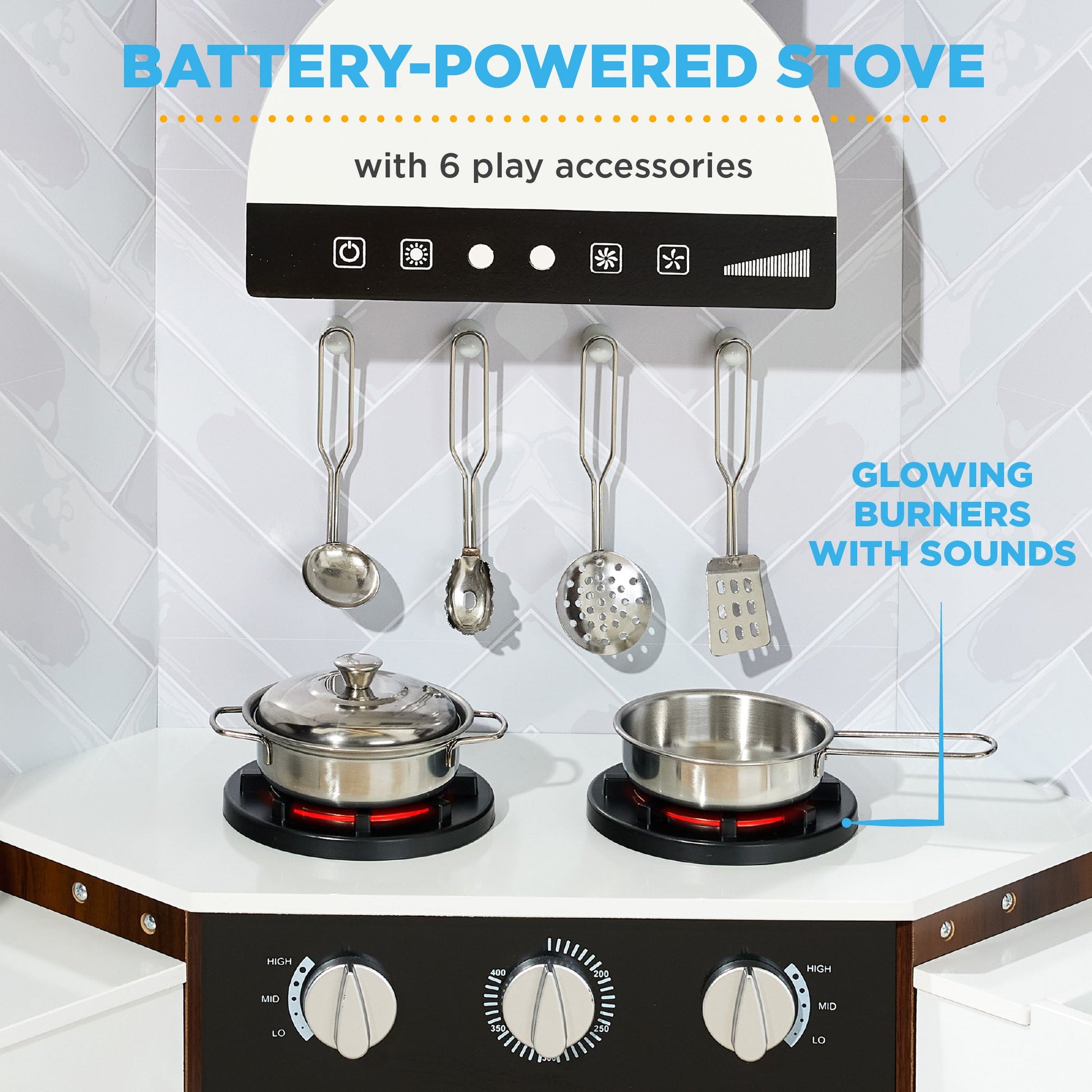 Pretend Play Corner Kitchen Wooden Toy Set for Kids w/ Lights, Sounds