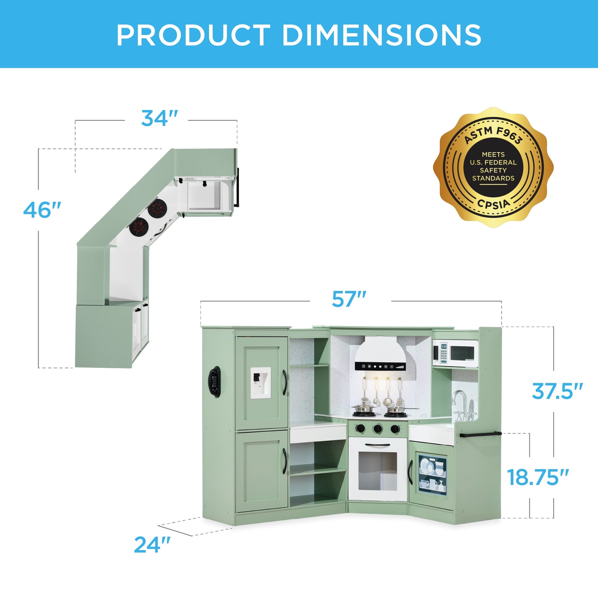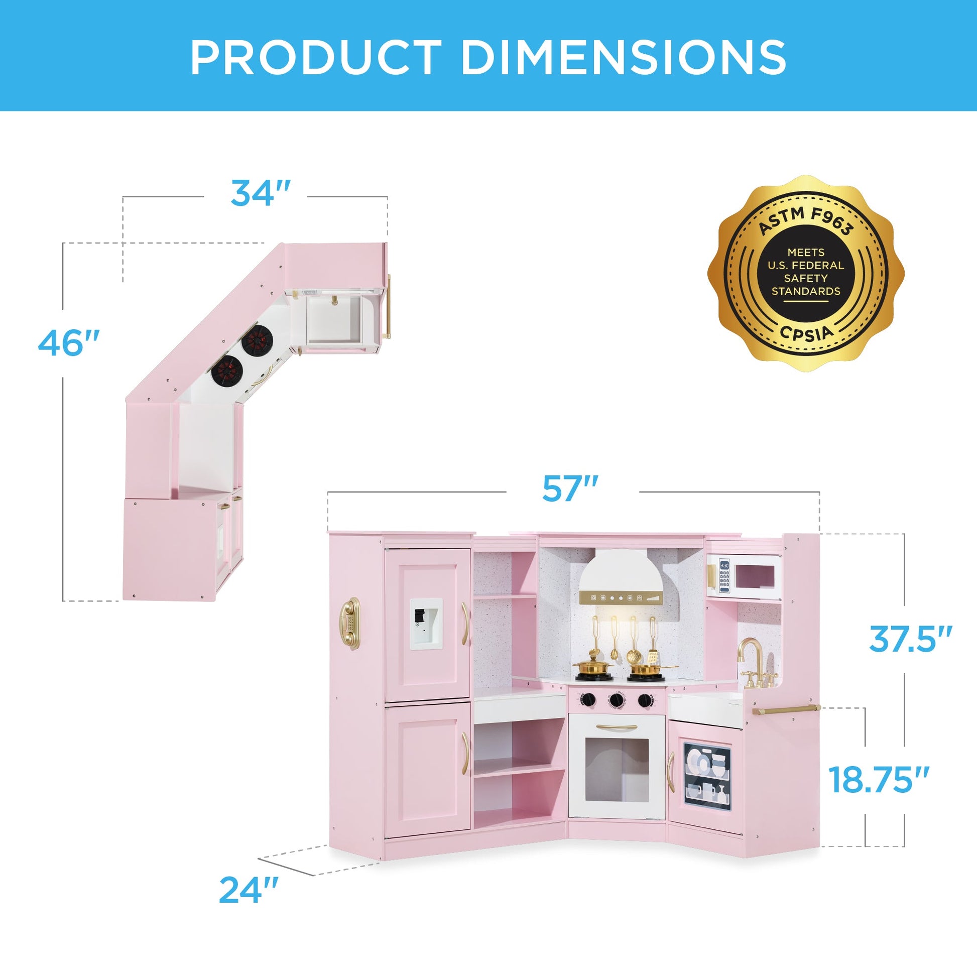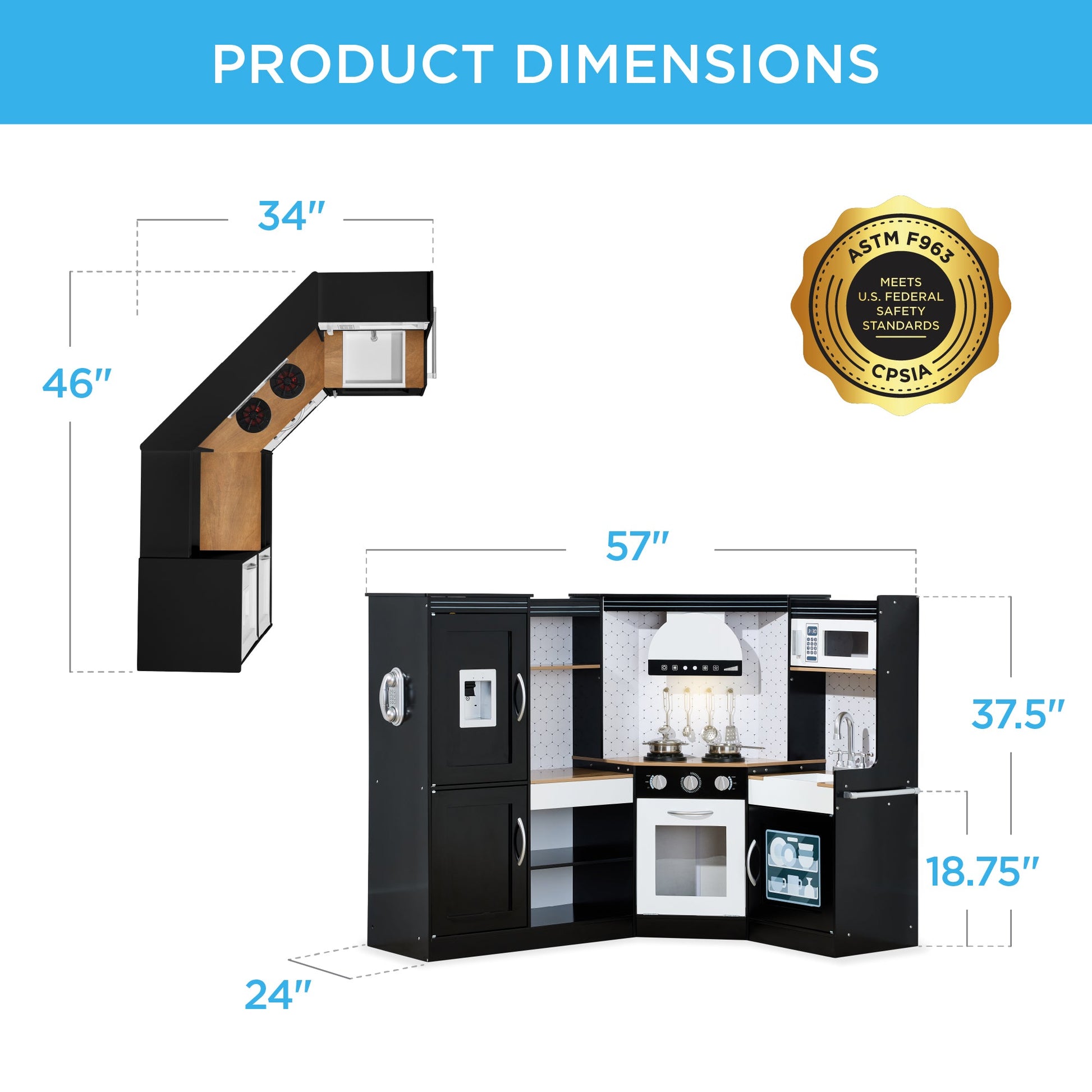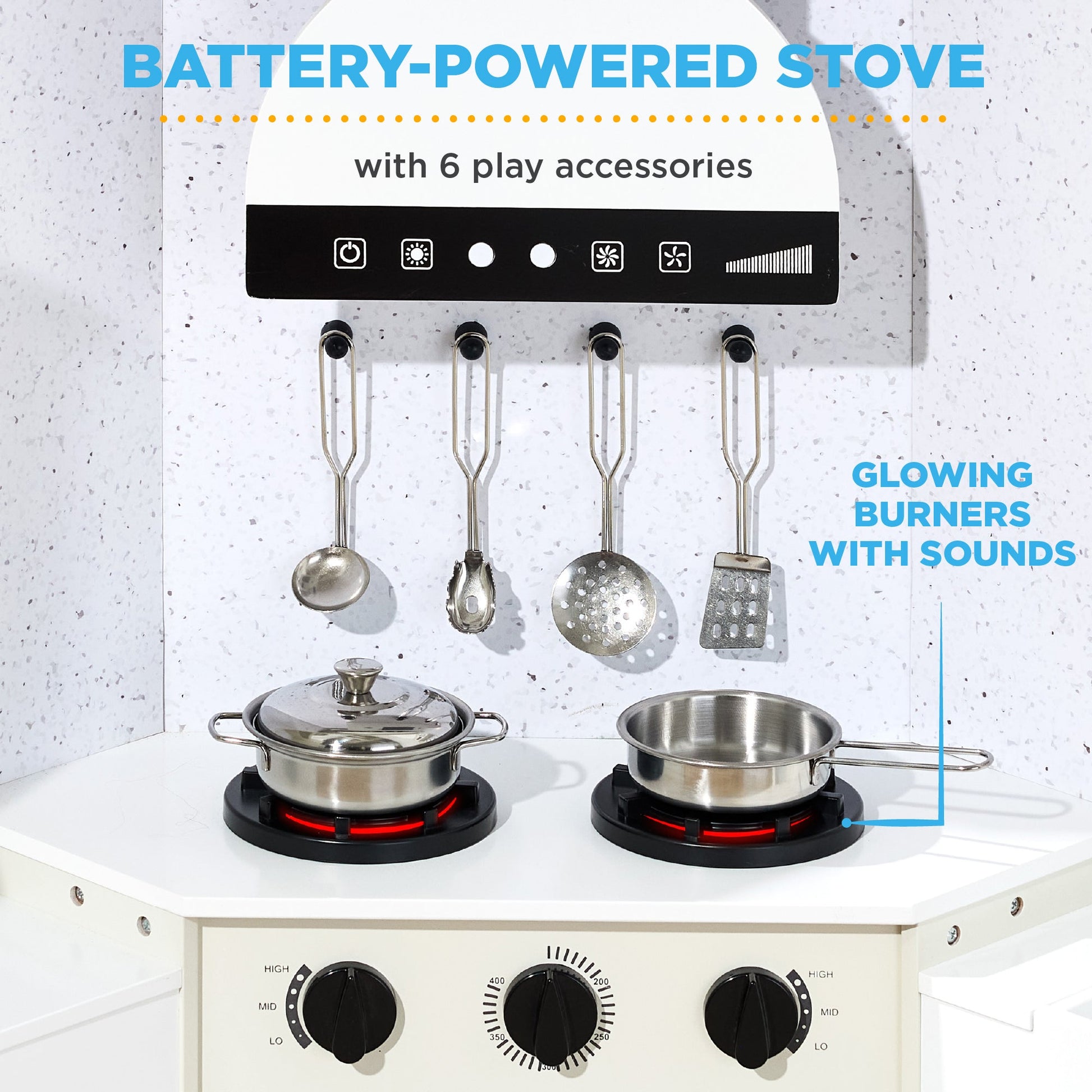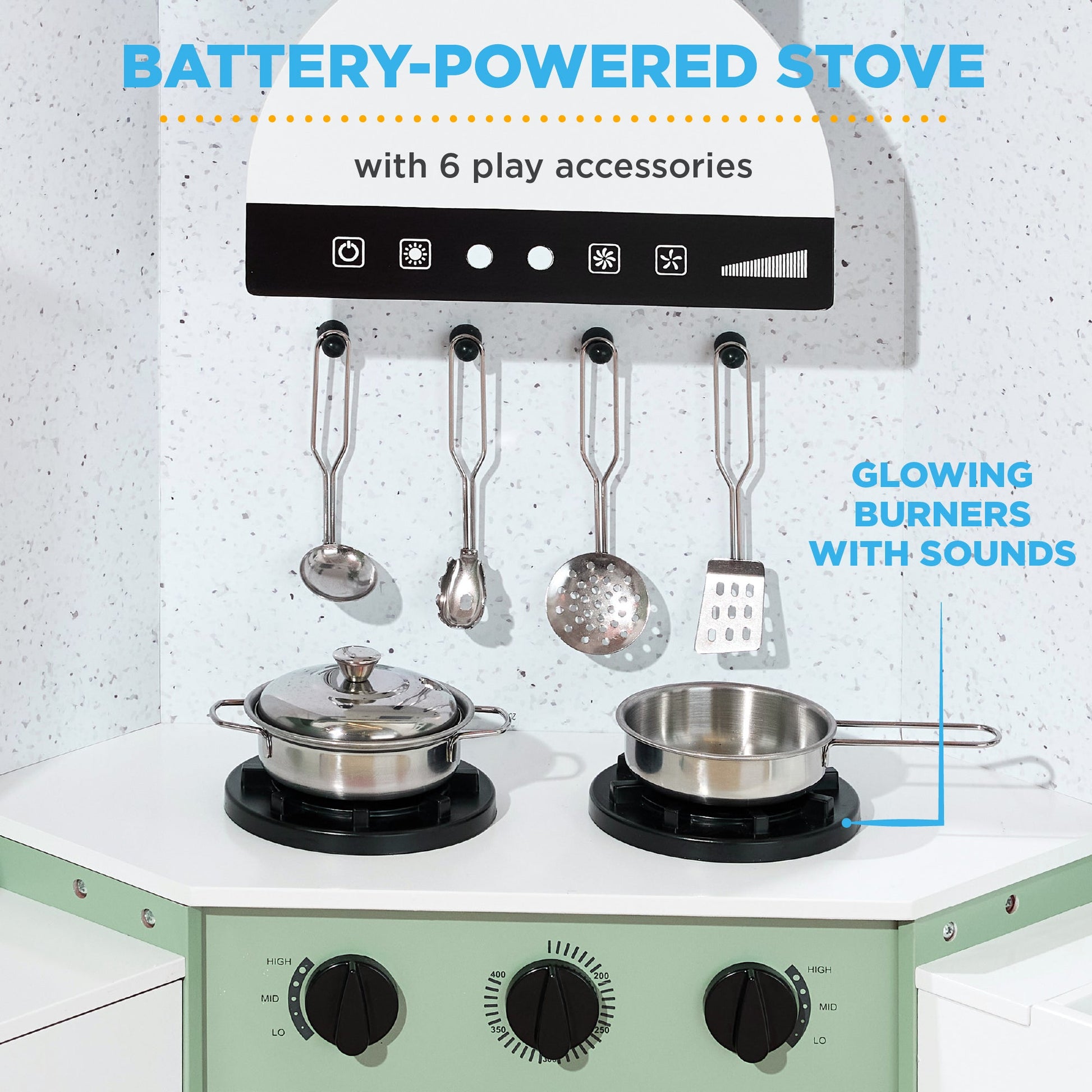 Pretend Play Corner Kitchen Wooden Toy Set for Kids w/ Lights, Sounds
