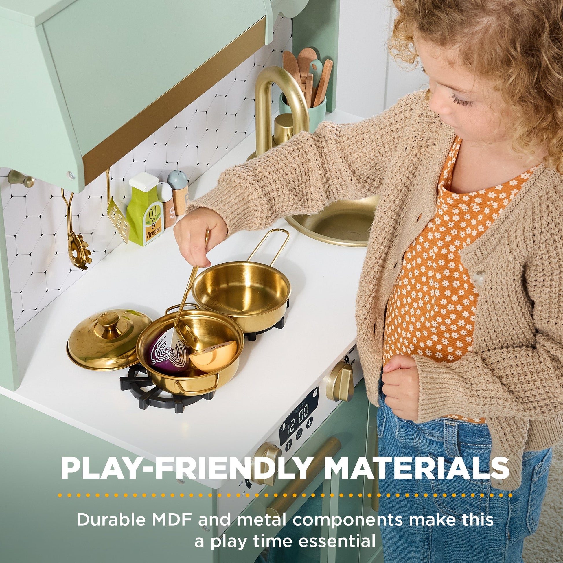 Pretend Play Cottage Kitchen Wooden Toy Set for Kids w/ 5 Accessories