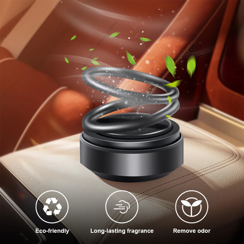 Solar Powered Car Fragrance Diffuser – Rotating Double Ring Aromatherapy Decoration