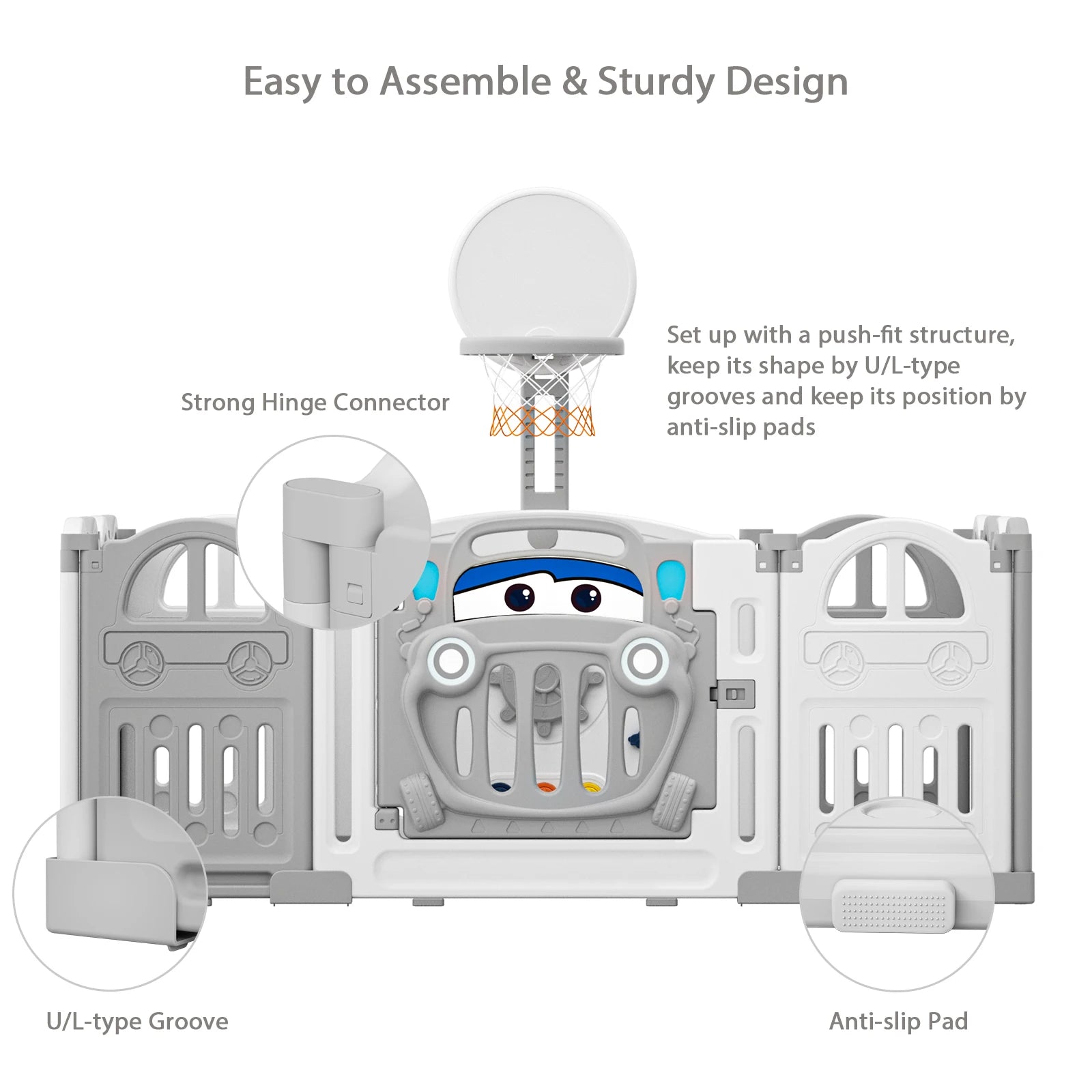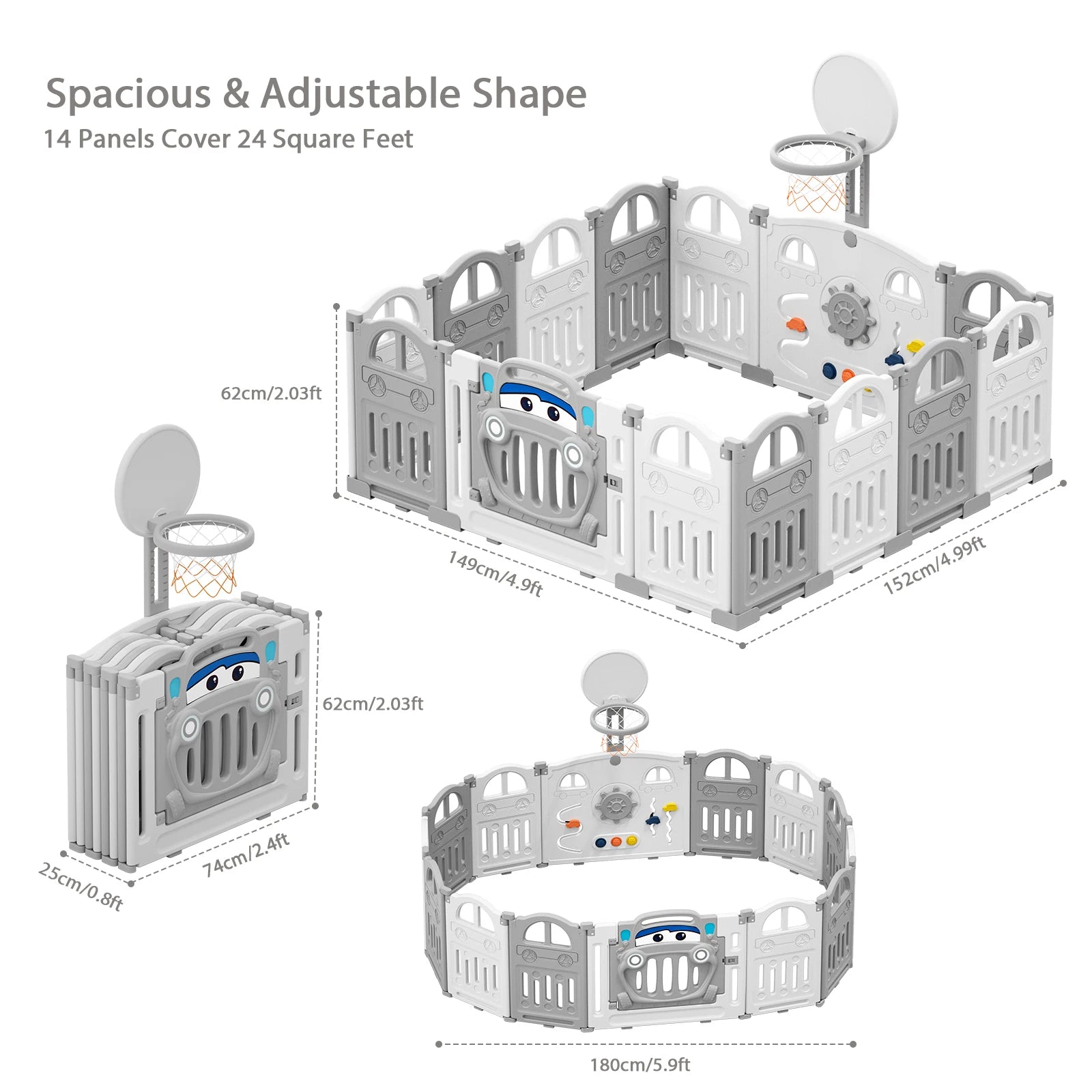 UBRAVOO Foldable Baby Playpen – 14-Panel Play Fence with Basketball Hoop & 50 Color Balls for Toddlers