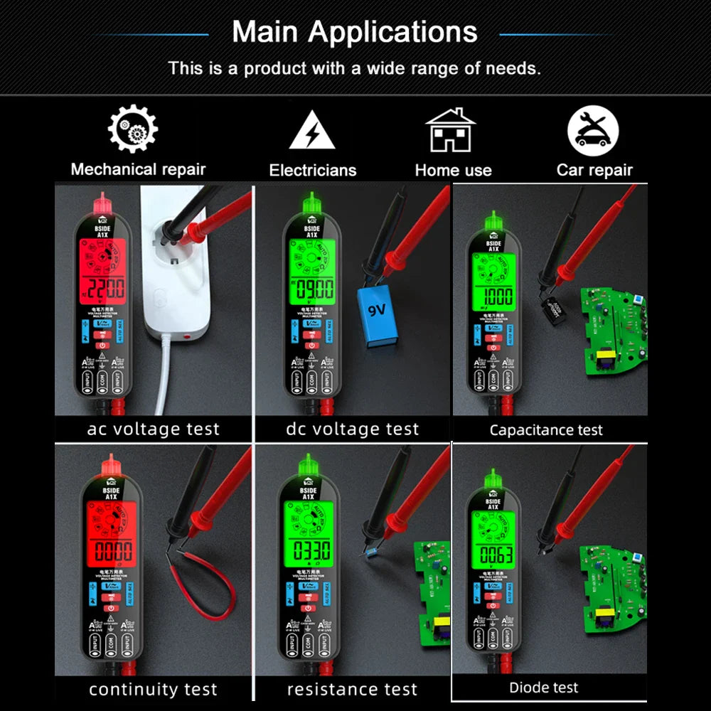 ● Large LCD color display, easy to use larger text, red and green backlight alarm all of these features are ideal for middle-aged and older electricians.