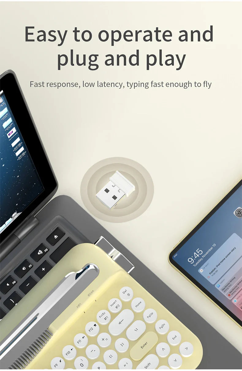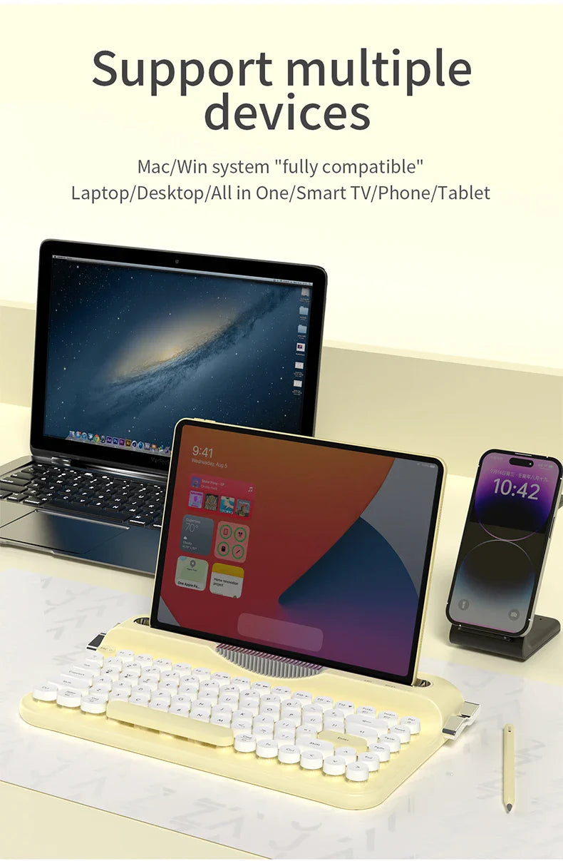 ● Designed with round, mechanical keys inspired by classic typewriters, this keyboard offers a tactile and satisfying typing experience.