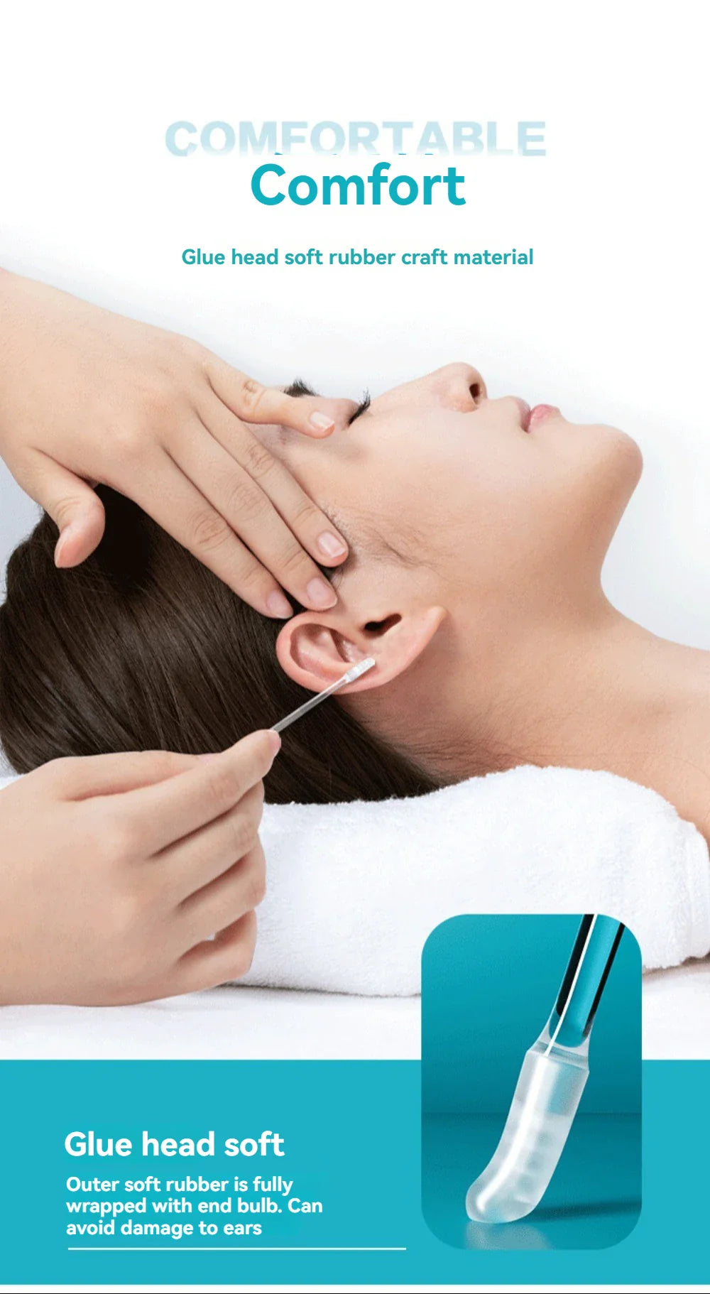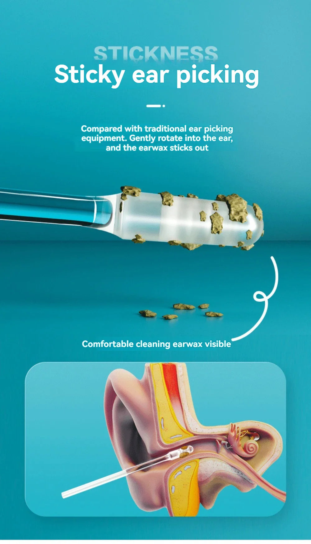 ● The sticky surface of the tip enables easy, gentle and hygienic removal of earwax.