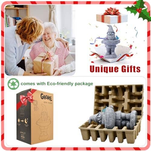 - Outdoor Bird Bath or Feeder:The tray in the gnome's hand can be used to hold bird food or water. This solar gnome statue can be a garden decoration, a bird feeder to attract wild birds to roost and feed, or a bird bath, there is always a choice for you