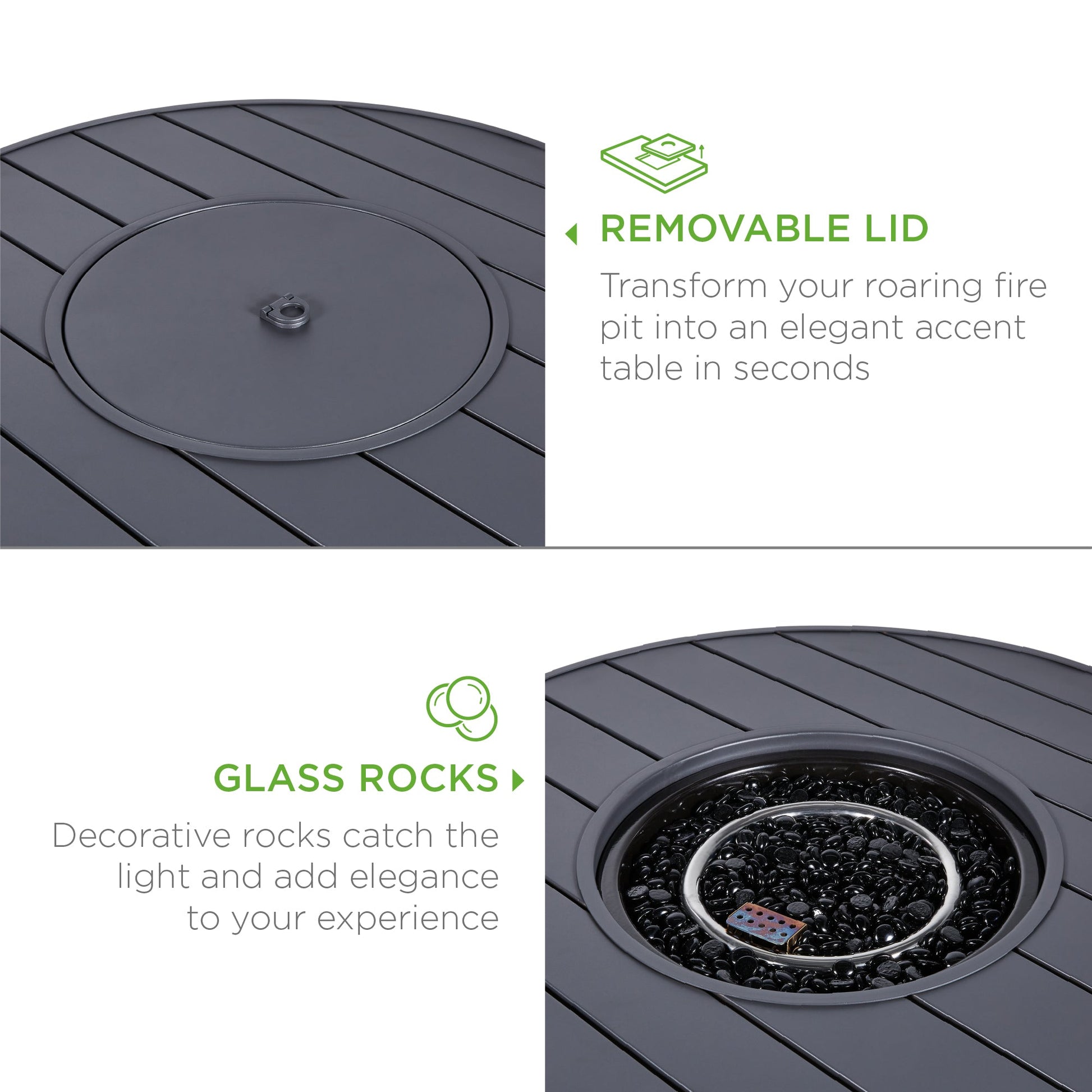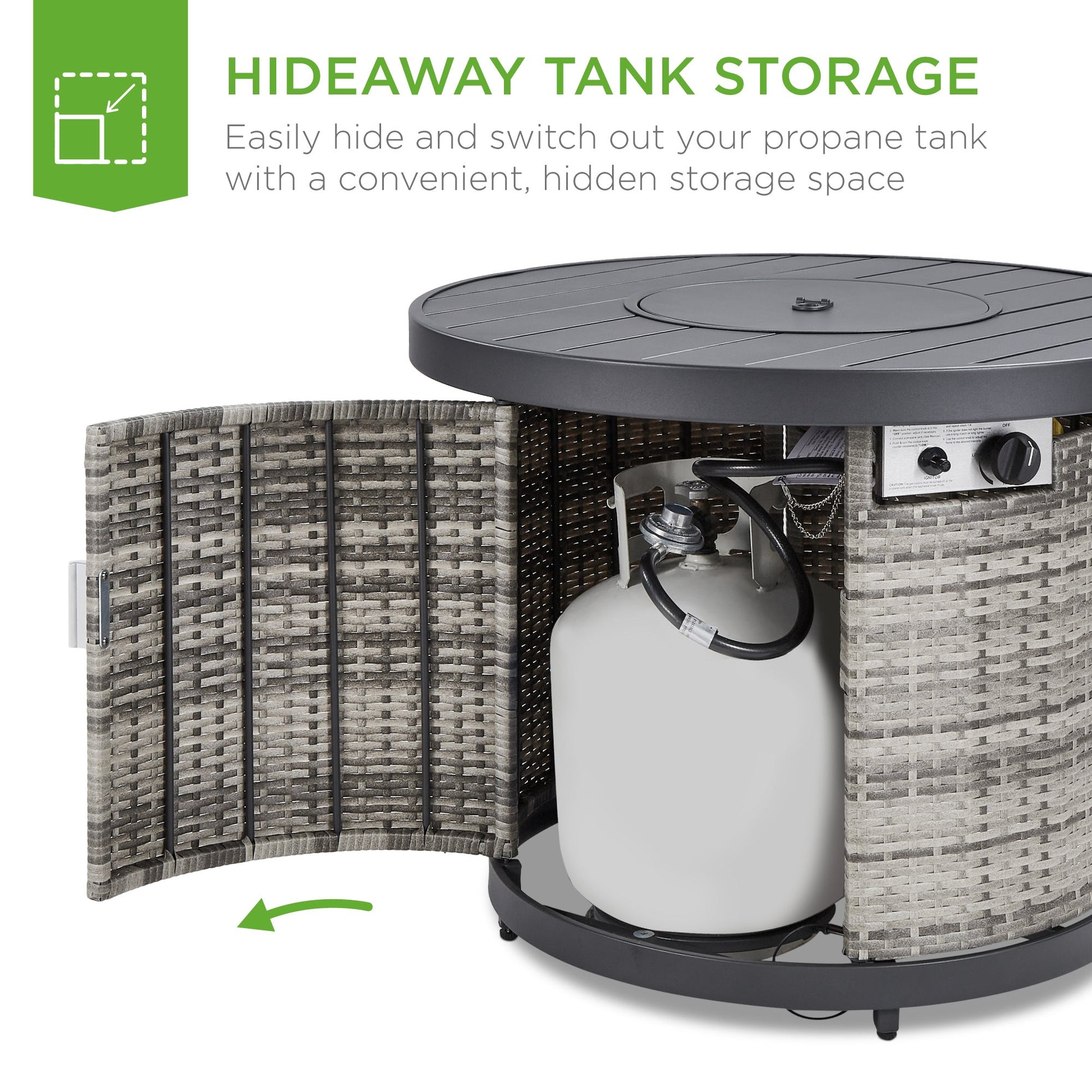 Round Fire Pit Table, 50,000 BTU Outdoor Wicker Firepit w/ Cover - 32in