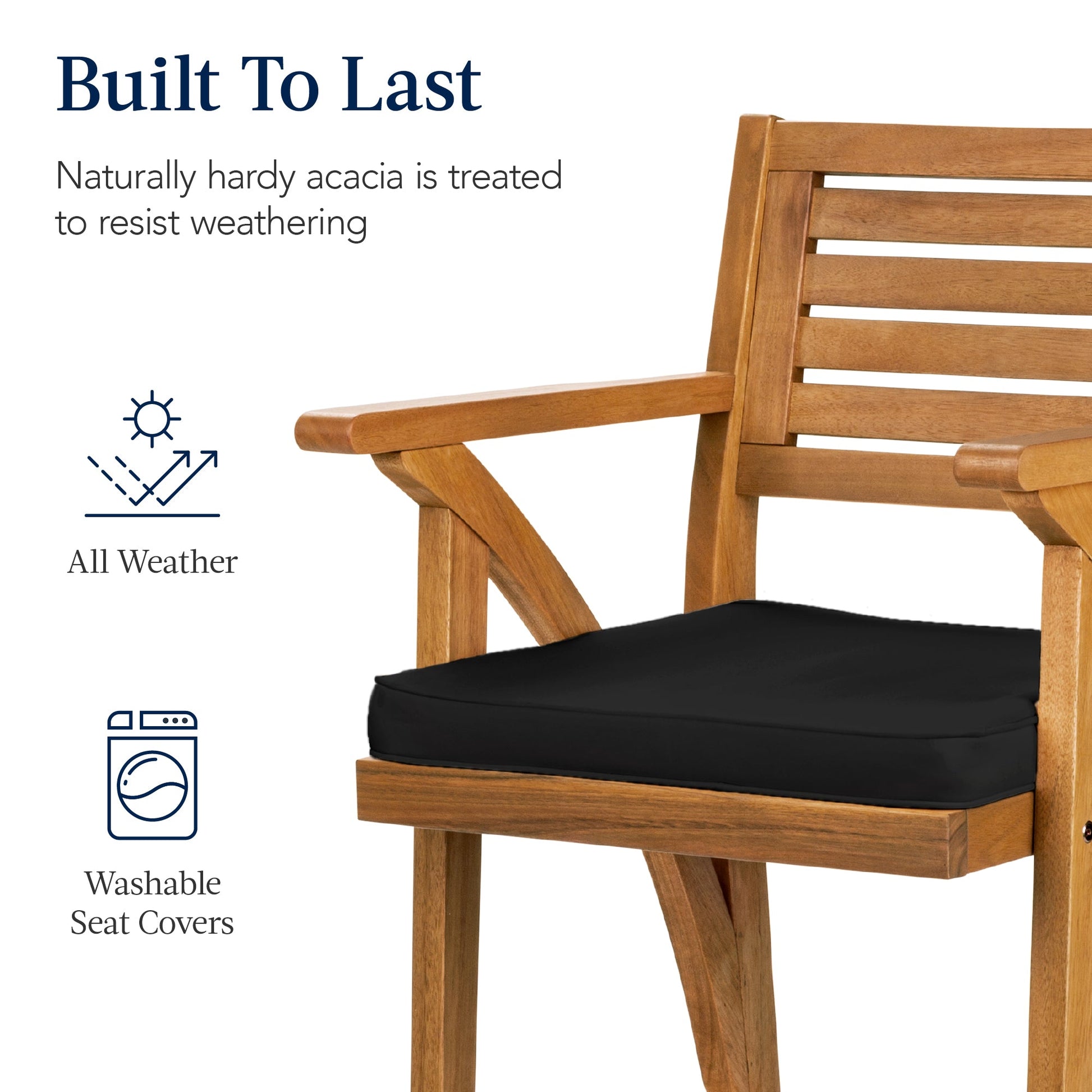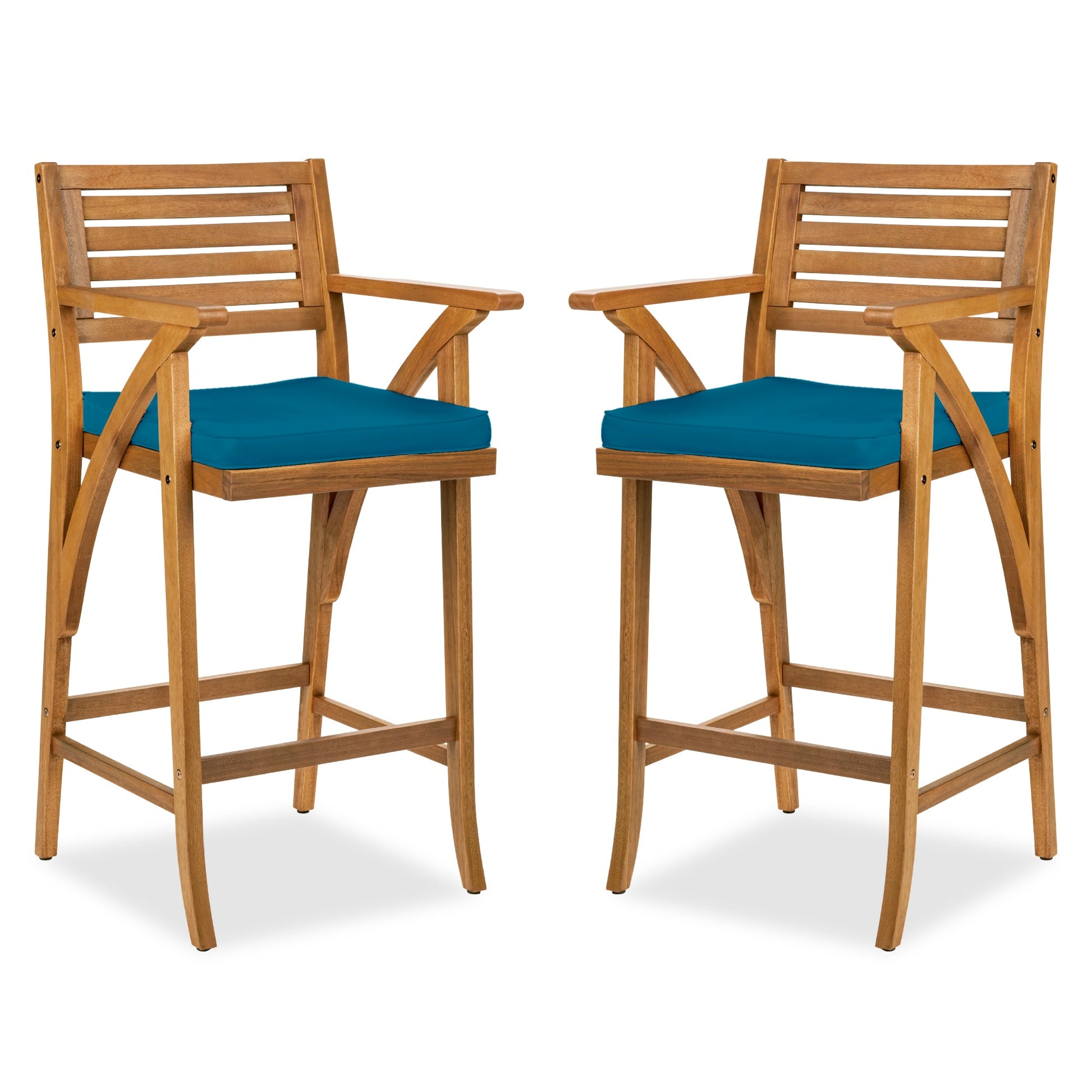 Set of 2 Outdoor Acacia Wood Bar Stools Chairs w/ Weather-Resistant Cushions