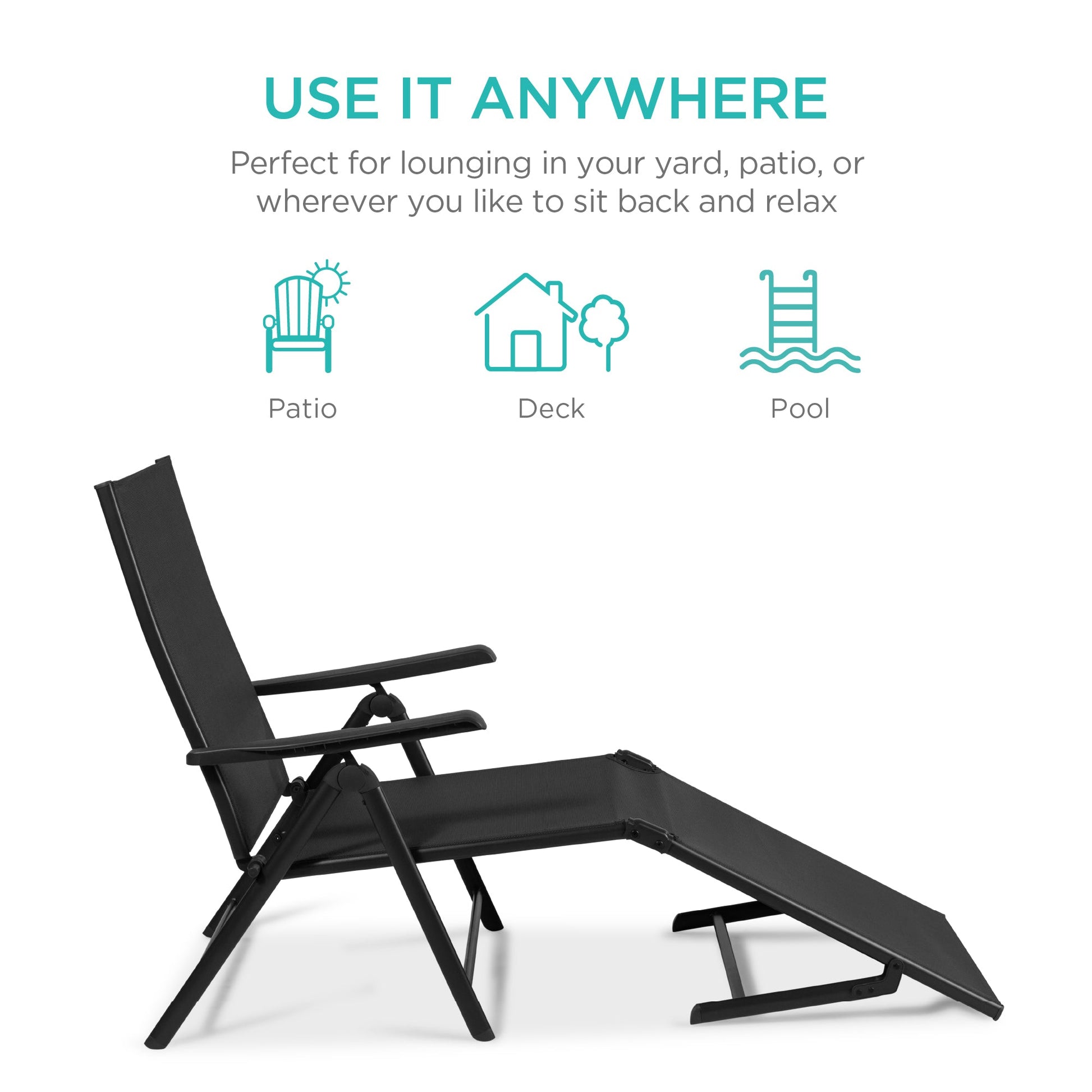 Set of 2 Outdoor Patio Chaise Recliner Lounge Chairs w/ Rust-Resistant Frame