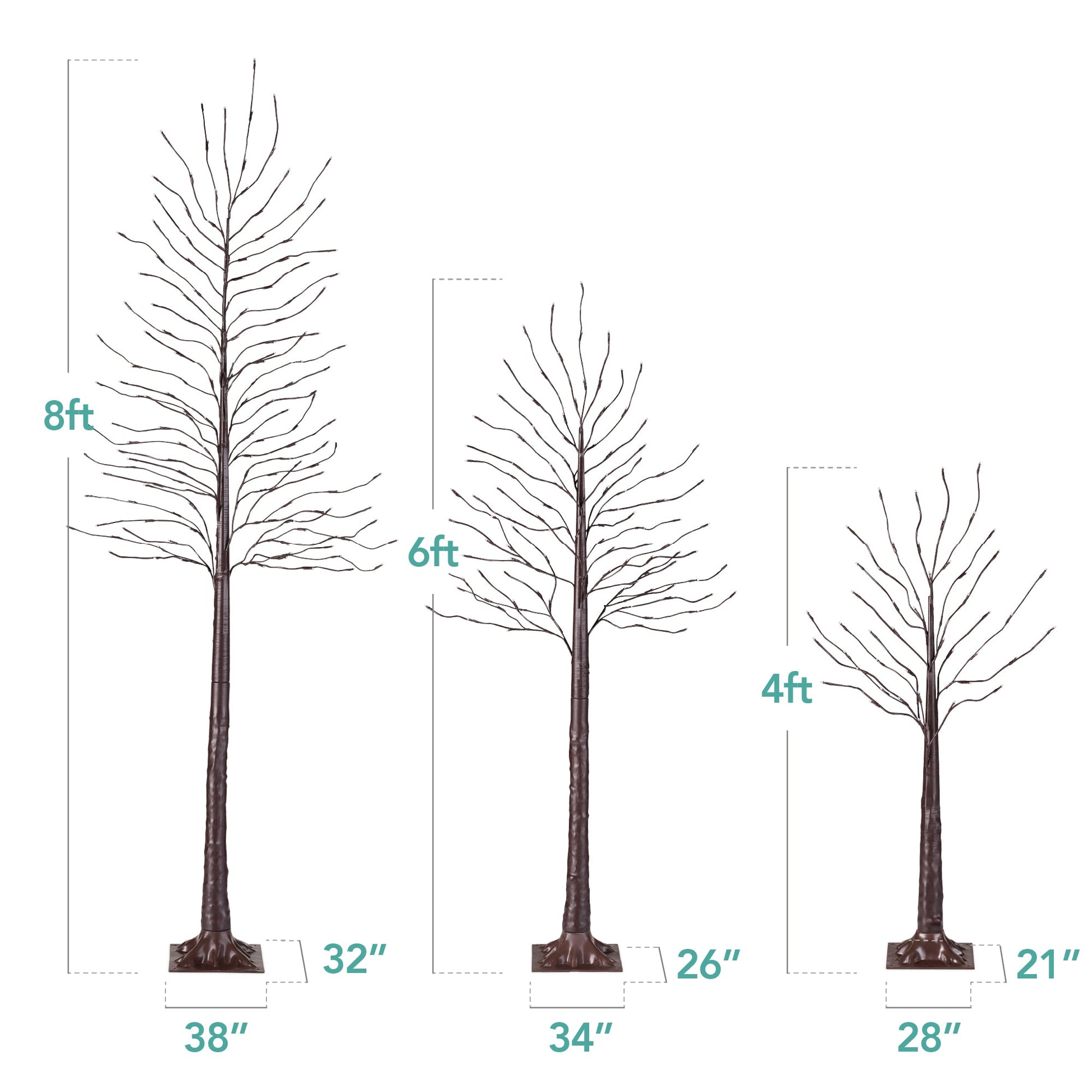 Set of 3 Lighted Twig Birch Trees, 4ft, 6ft, 8ft w/ 300 2-in-1 LEDs