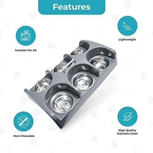 - Perfect for Puppies, Cats AND Kittens – Strategically designed with both puppies and kittens in mind, the 6-bowl whelping feeder possesses medium-sized, rounded bowls that prevent whisker fatigue in cats and make it easy for dogs/puppies to reach every bite of food.
