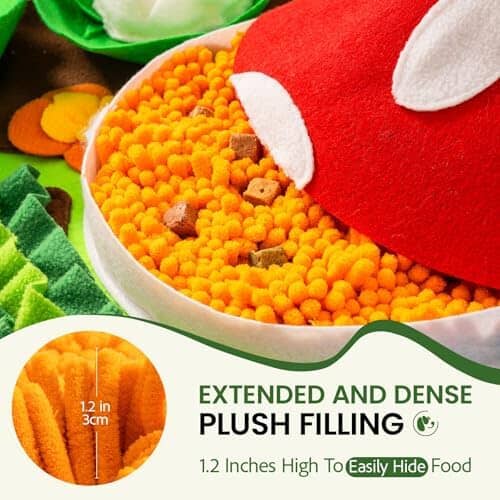 - Upgraded Snuffle Mat: Our sniffing mat features an upgraded plush stuffing, now longer and denser with a height of 1.2 inches. This enhancement makes it even easier to hide treats and keeps your pet engaged